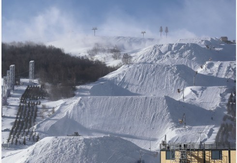 近日,北京2022年冬奥会张家口赛区云顶滑雪公园的赛道造雪、塑型工作正在稳步推进。