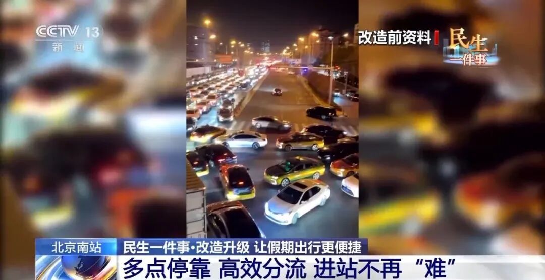 北京市重点站区管委会南站地区管理办公室副主任王淼申表示,“我们会同丰台区和交管部门临时开辟了一条长513米的出租车蓄车道,接站车辆流量比较大的情况下,结合东南区域的三角地可以达到蓄车136辆,有效缓解出租车排队外溢导致的交通拥堵问题。我们通过功能重组和精细划分,让路网资源得到充分有效利用,现在的东南西北四个方向均实现了落客功能。我们现在也在同步进行地下停车场9个出入口的修缮,让旅客进出站的效率更高,环境更好。”