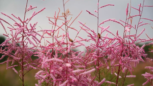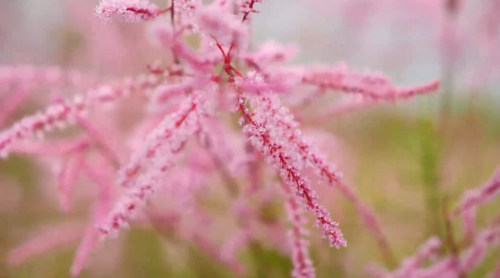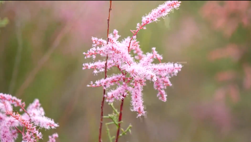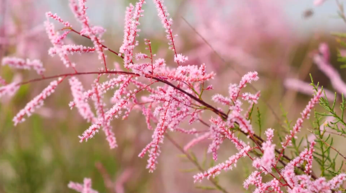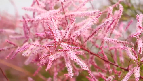 近日,在新疆阿克苏地区拜城县周边的戈壁荒滩上,万亩红柳花竞相绽放,把大地装扮成粉红色的花海,在天山脚下展现出勃勃生机,也格外美丽。