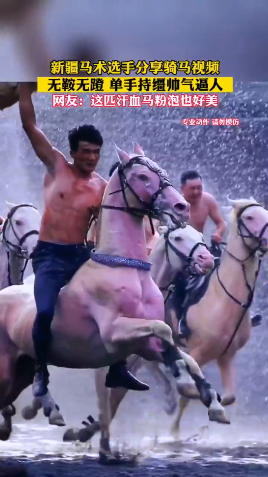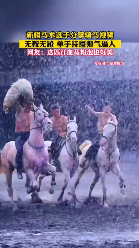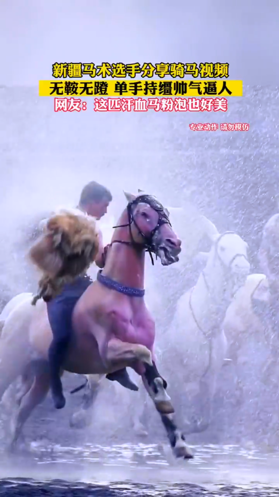 近日,新疆乌鲁木齐,一名马术选手分享身骑汗血宝马的视频。他无鞍无蹬,单手持缰,动作十分娴熟流畅。提醒:专业动作,请勿模仿。