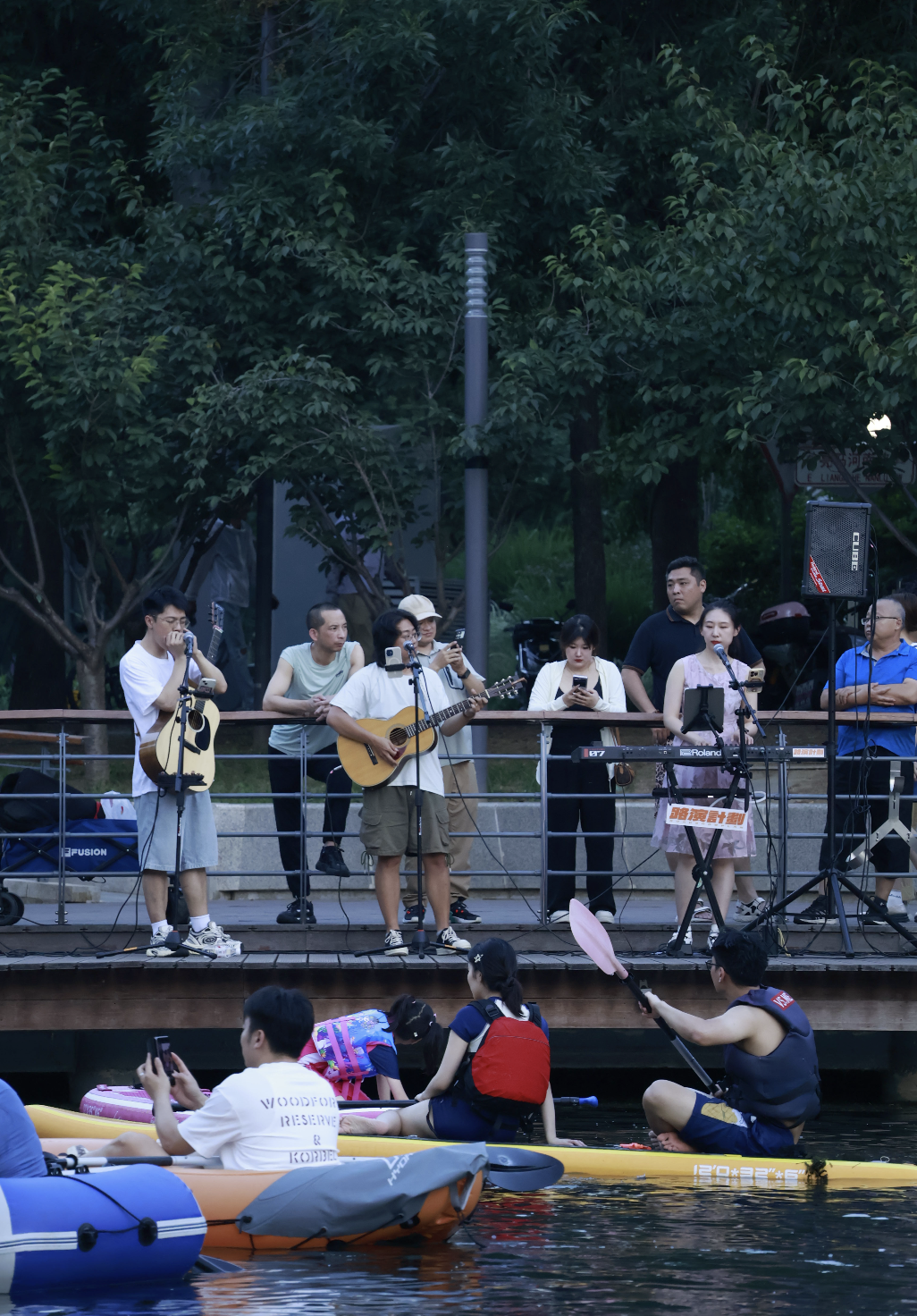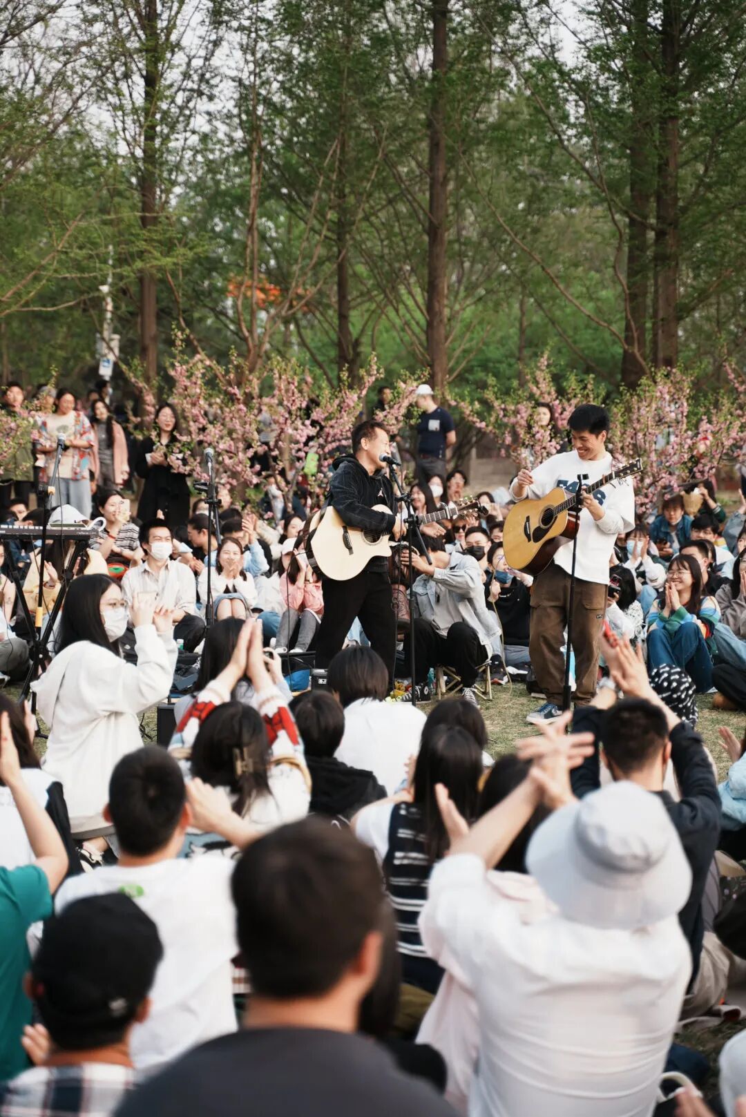 「我印象很深,那天我在插设备,当时底下没有多少人。等我插完一抬头,哗——后面全是人,一层又一层。」潇覃说,那篇预告帖被点赞了2000多次,是当时的他们从未有过的互动量,现场的观众数量,超出了他们的想象。