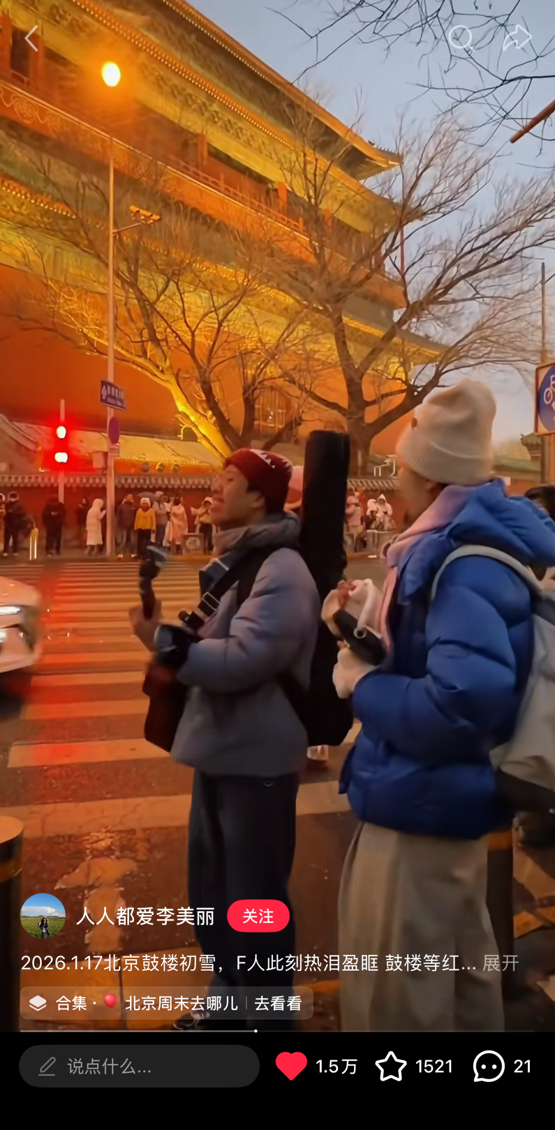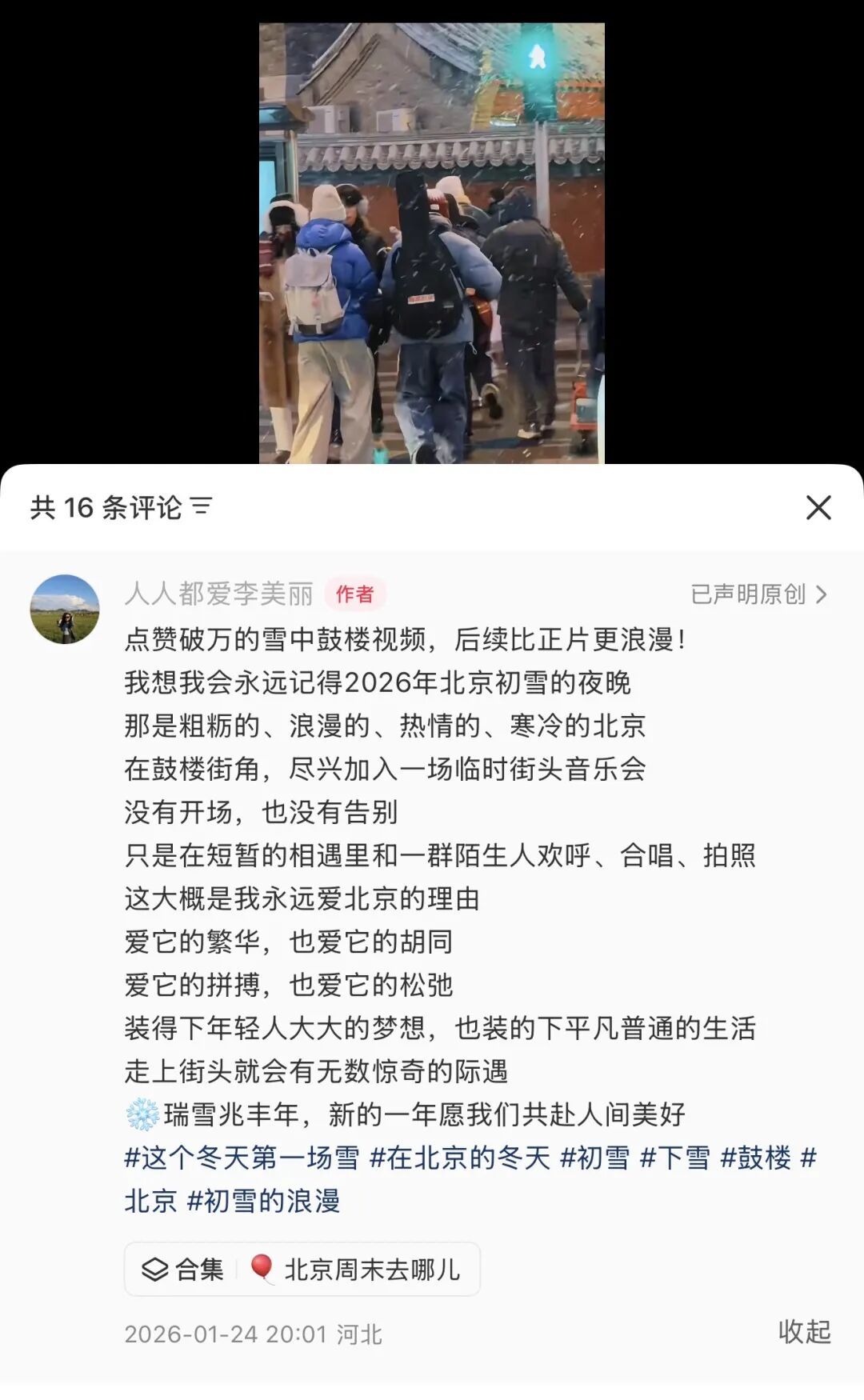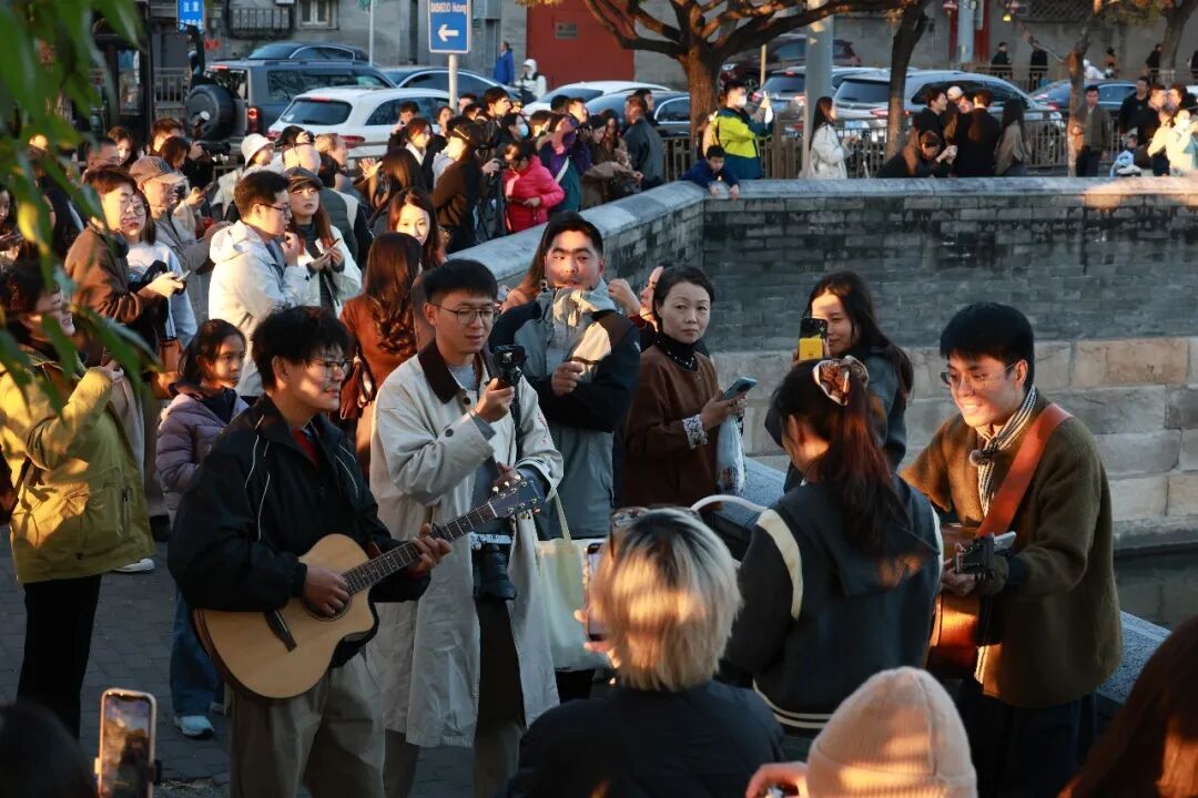 一位名为「人人都爱李美丽」的网友曾在雪中的鼓楼遇见过他们唱着赵雷的《鼓楼》,她记录下来发到网上。