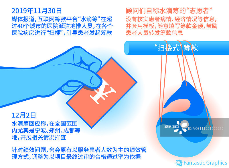11月30日,媒体发布了一则“卧底水滴筹”的视频。自称水滴筹“志愿者”的顾问,在发起筹款的过程中只是口头询问,没有核实患者病情、经济情况等信息,并套用模板,随意填写筹款金额,鼓励患者大量转发筹款信息。