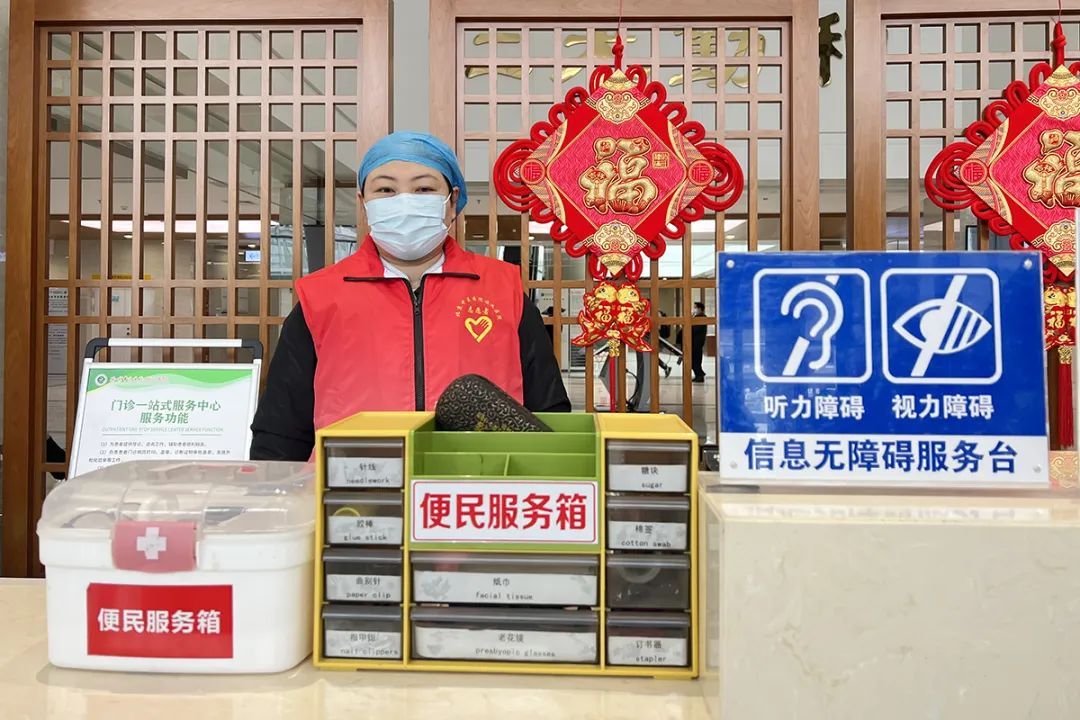 在硬件设施方面,北京中医医院顺义医院从细节处着手,门诊大厅及住院部均设有无障碍出入口。院内配备了共享轮椅,供有需求的患者使用。一层设有母婴室,每层均设有无障碍卫生间,在门诊大厅的咨询台处设有便民服务箱,为患者就医提供便利。