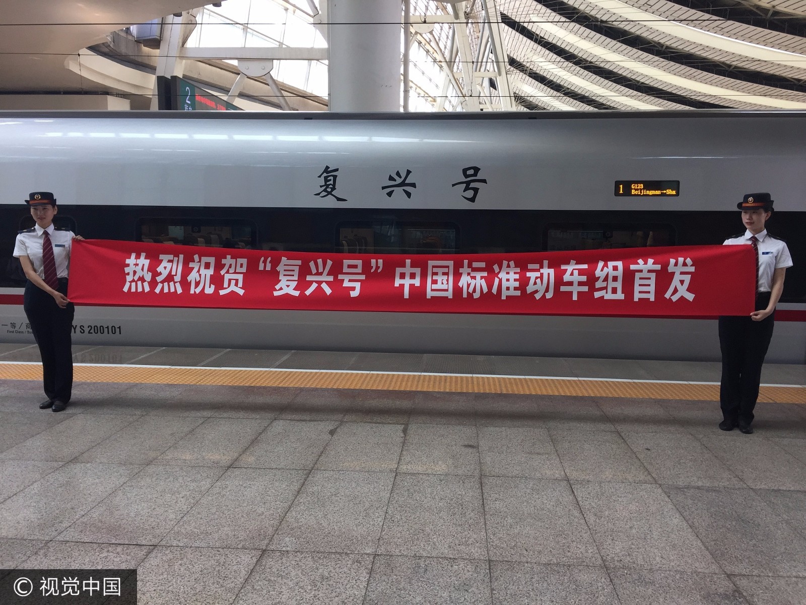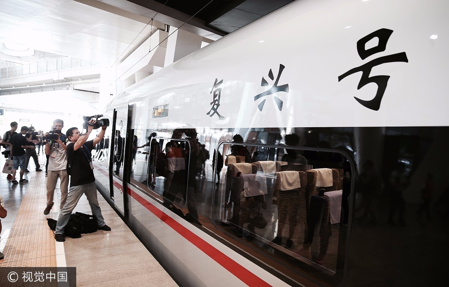 据悉,“复兴号”是由中国铁路总公司牵头组织研制、我国具有完全自主知识产权、达到世界先进水平的中国标准动车组。