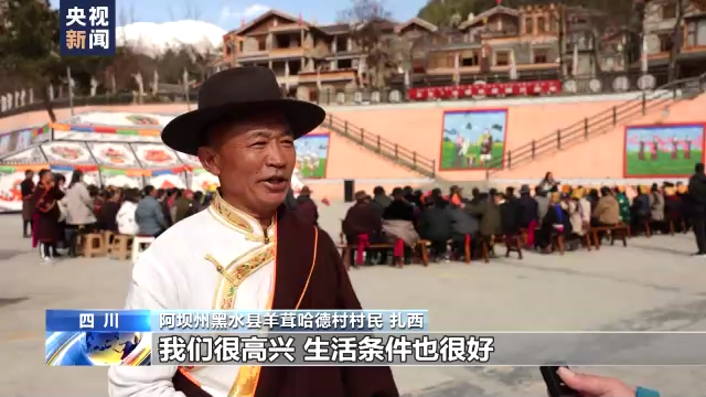 四川阿坝州黑水县羊茸哈德村村民 扎西:今年藏历新年活动组织得非常丰富,我们很高兴,现在生活条件也很好,房子也修得漂漂亮亮的,交通也很方便,每年的收入也很稳定。