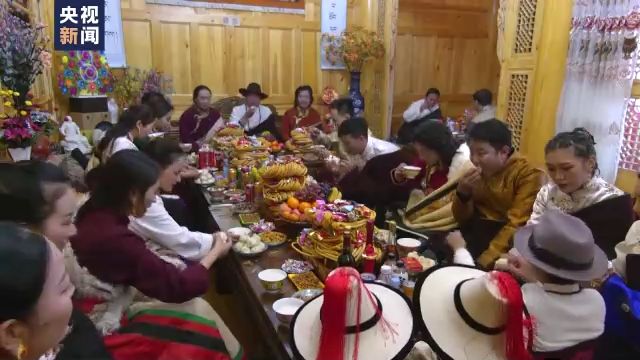 这两天,在青海黄南州同仁市隆务镇吾屯村村民格日家里,前来拜年的客人络绎不绝。为迎接前来串门拜年的亲朋好友,格日一家人身穿节日的盛装,早早准备好了藏族传统美食。