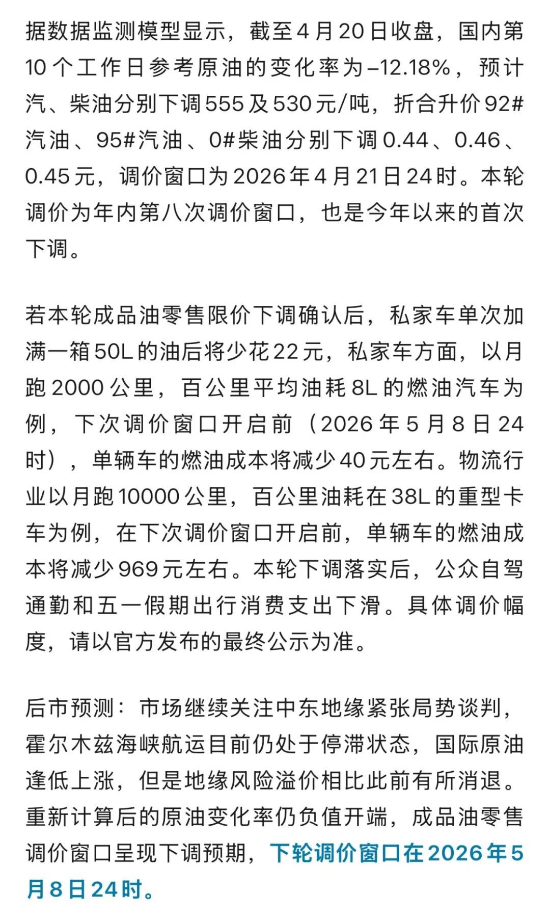 就在今晚!国内油价或迎2026年首次下调