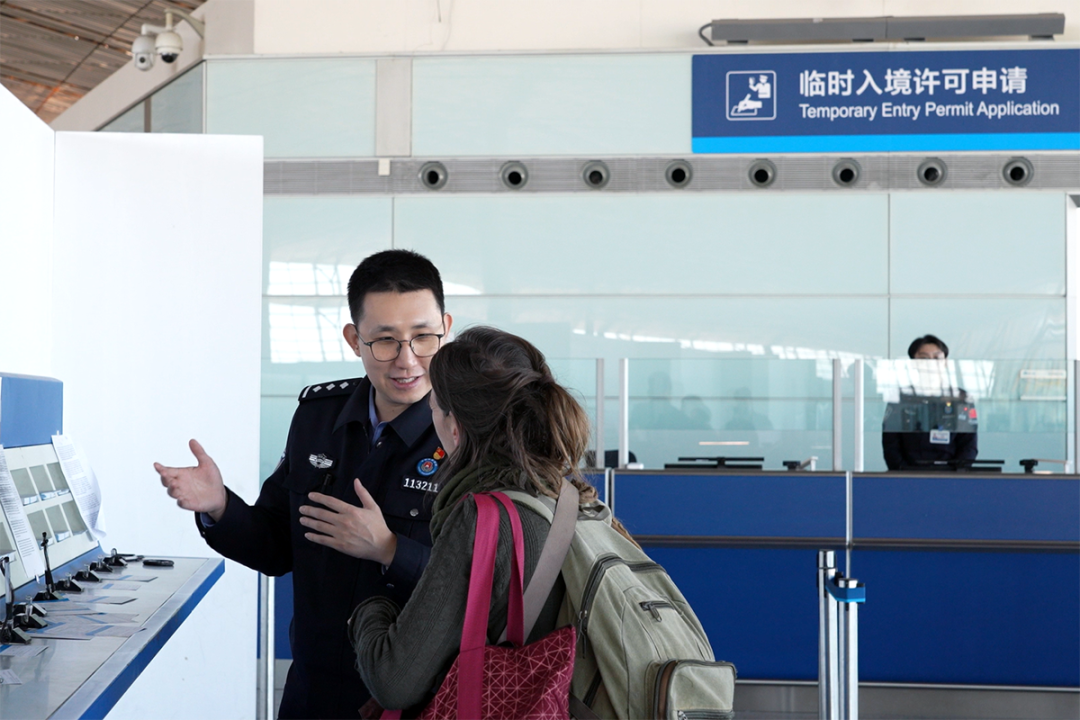 “北京边检总站加强勤务组织调度和旅客流量监测,精准布设引导标志,积极组建多语种服务小组,选派精通外语的民警做好政策解读,全力确保符合条件的外国人顺畅来华。对于准予签发的外籍旅客,民警发放过境免签政策停留区域提示单,加强对允许停留时长、停留区域的提示提醒,增强外籍旅客通关体验,为进一步服务高水平开放高质量发展注入北京边检力量。”北京边检总站执勤二大队执勤三队副队长兰剑表示。