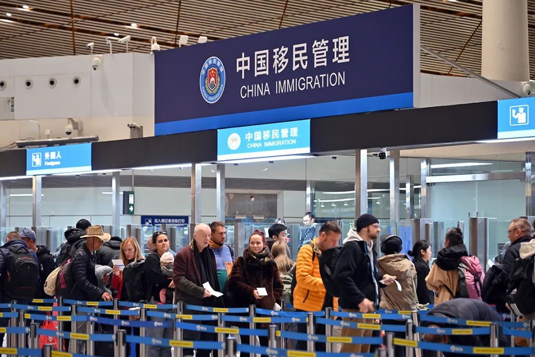 12月17日,北京口岸首批享受过境免签新政策的外国籍旅客。
