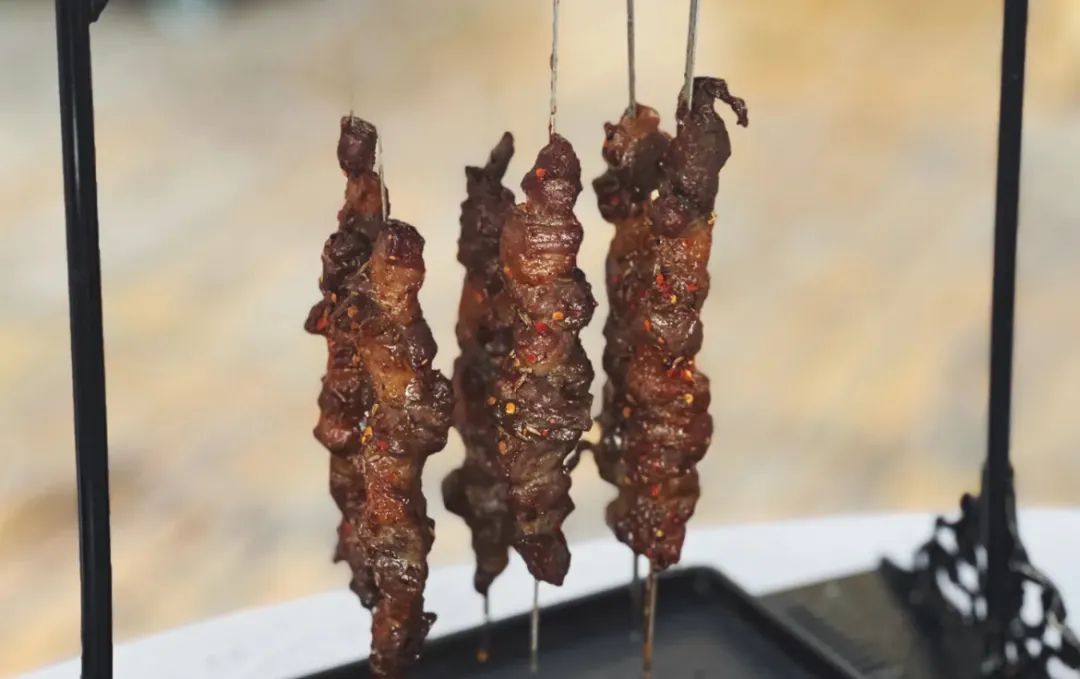 群生大院以驴肉为主打,驴肉火烧和老汤炖豆腐口感独特,融合了怀柔与老北京风味。炭烤驴肉串现场会用火撩一下,让驴肉的表皮更加酥脆,一口咬下去爆汁爆油,非常值得一试!