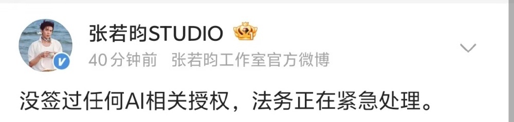 随后,包括张若昀、李一桐、于和伟等多位艺人也通过工作室微博与粉丝对接账号发声,称未签署过任何影视AI授权。此前,张若昀在接受采访时就曾表示过:“AI永远取代不了完全的表演,想跟观众交流的机会是取代不了的。”