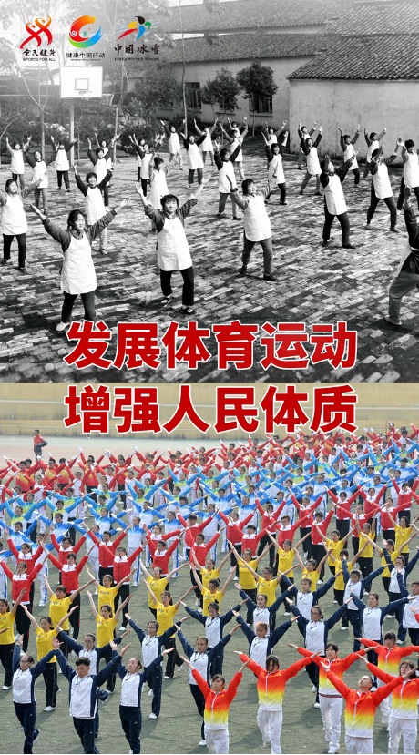 做广播体操,曾经群众最普遍的健身方式之一,成千上万人同做广播体操成为一代又一代人的记忆。1952年6月10日,毛泽东同志题词:“发展体育运动,增强人民体质”。2022年6月10日,体育总局最新拍摄的《第九套广播体操》在中央电视台播出,成为毛泽东同志“发展体育运动,增强人民体质”题词70周年主题活动的重要内容之一,也将亮相全民健身线上运动会工间操时间。