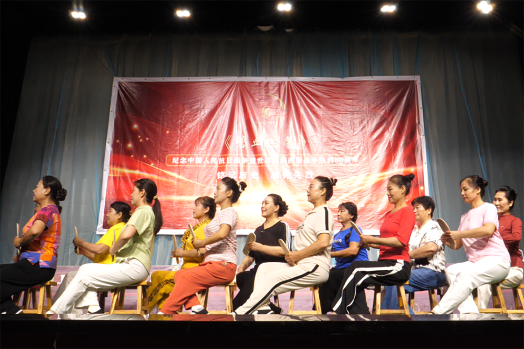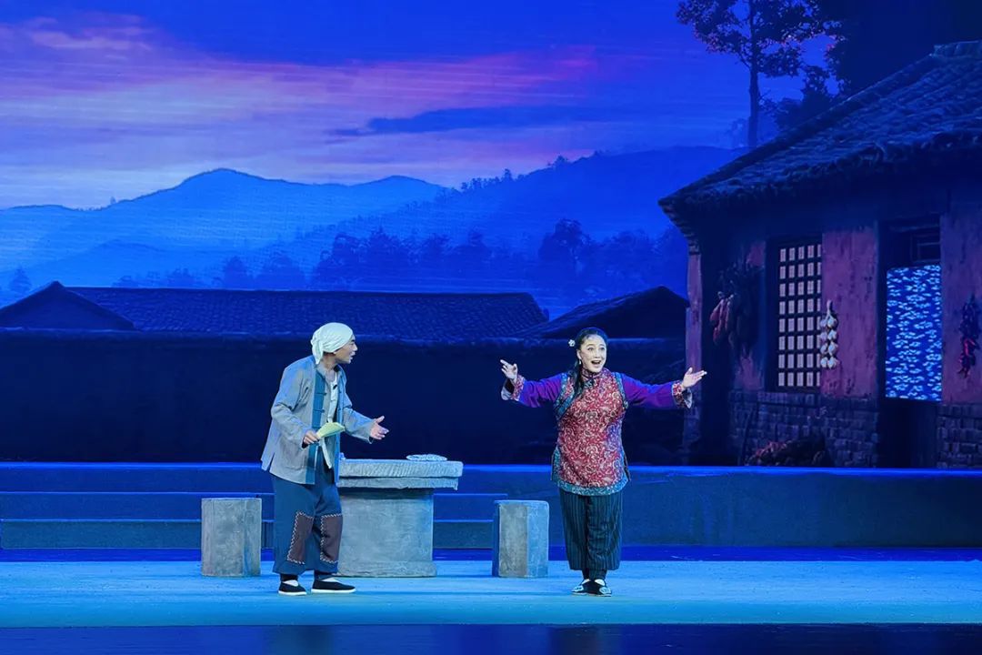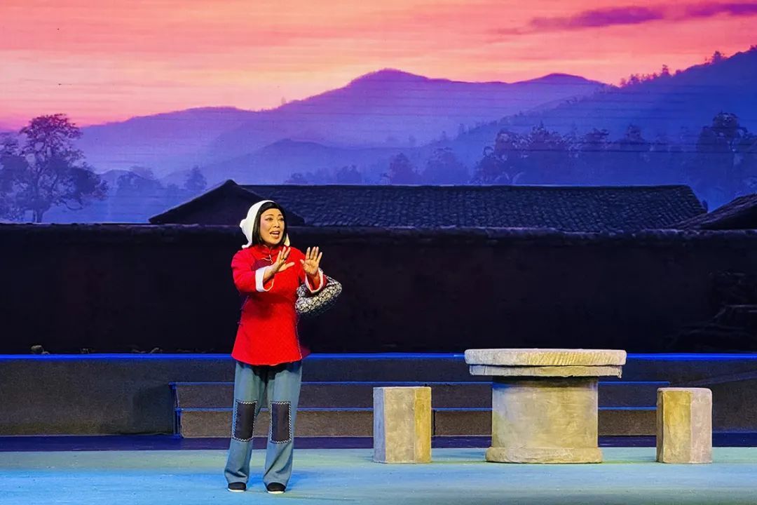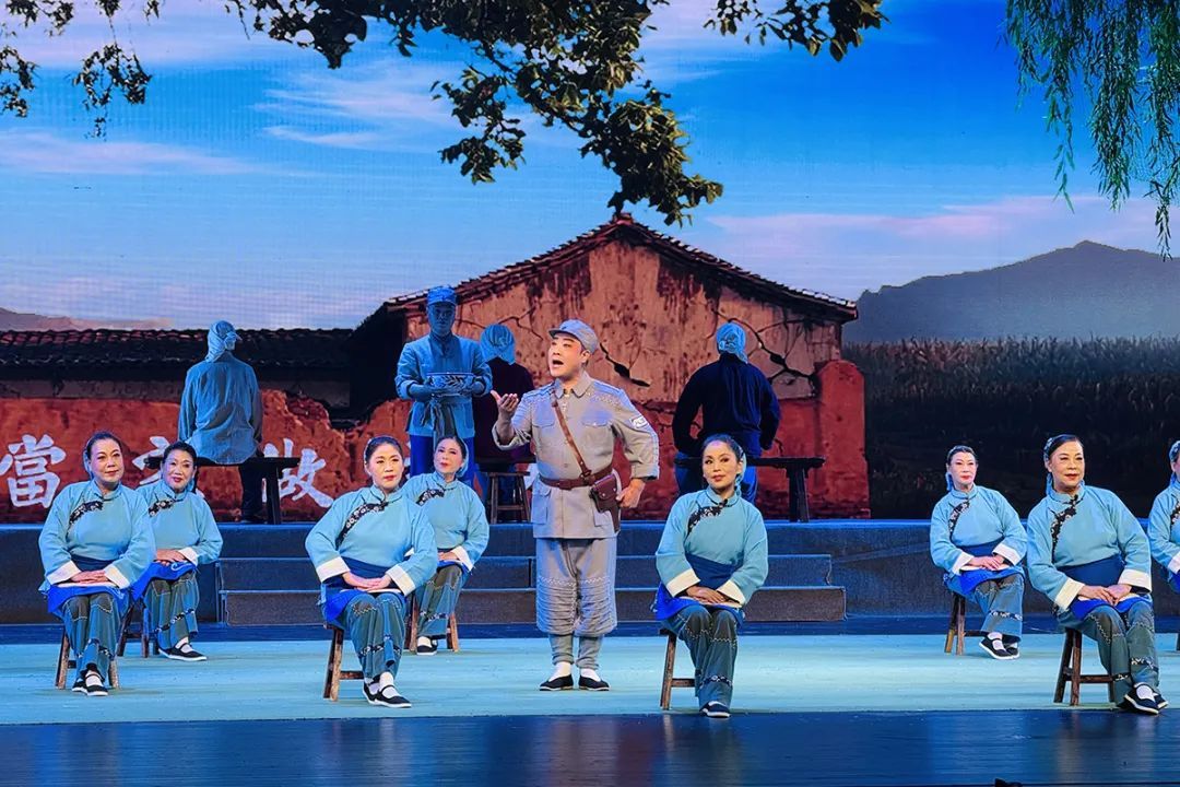 随着幕布缓缓拉开,抗日战争时期的乡村场景在舞台上鲜活呈现。