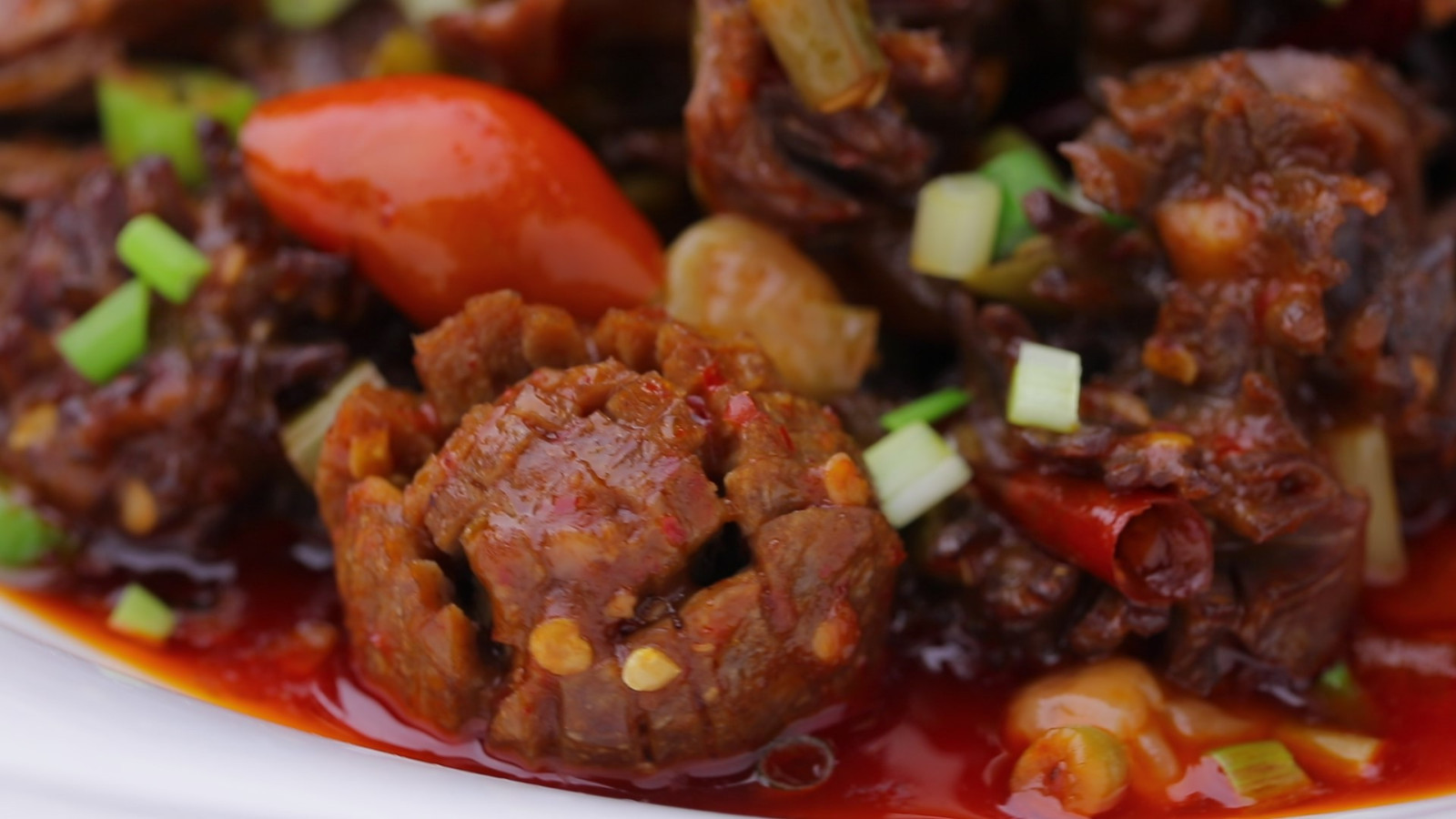 鸭胗也就是鸭子的胃,四川人称其为鸭郡肝。鸭胗处理不好,容易老,咬不动。