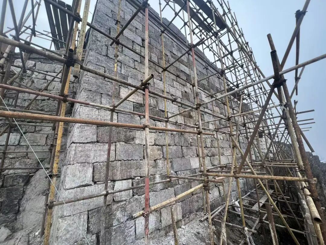 “新定制的石条每块都有500多斤,想要把这200多块石条运上来,以前的法子行不通。”程永茂说。经多方论证,施工方沿山势搭建了1200多米长的滑道,其间设置七八处中转点,才将这些石条拖拽至海拔近千米的施工现场。如此之大的海拔落差和如此之长的滑道架设,在长城修缮史中尚属罕见。