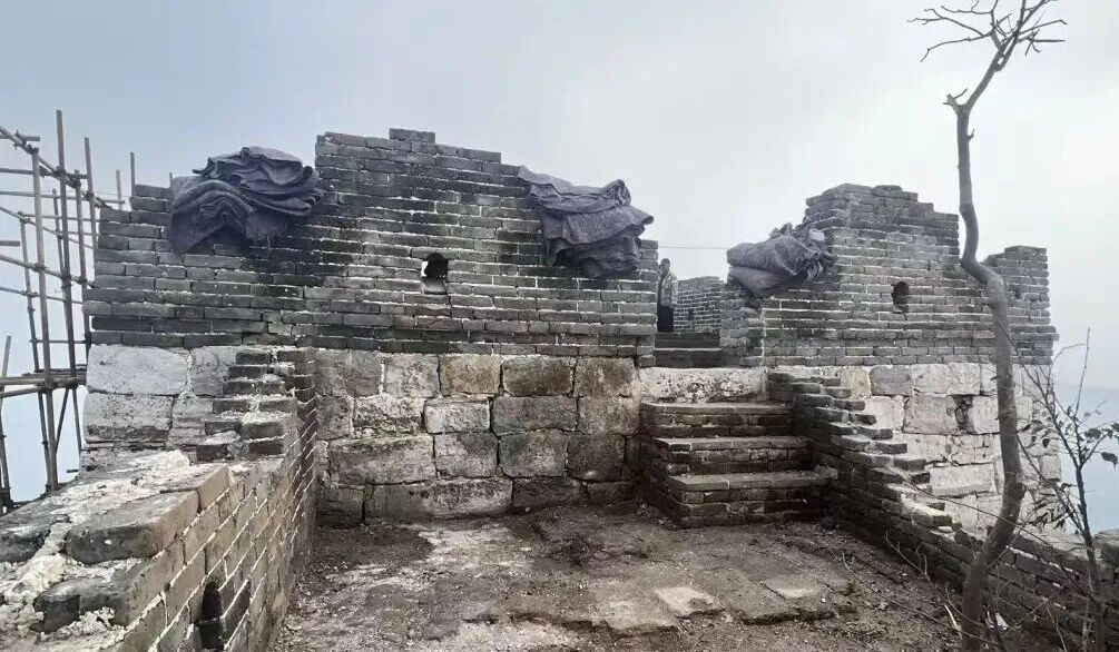 海拔近千米的箭扣长城“北京结”素有明长城“活化石”之称,作为连接内外长城的交汇节点,军事防御价值独特,知名度颇高。2023年,受连续降雨影响,“北京结”北侧墙体轰然坍塌,百余块城砖石条滚落至近300米高的悬崖之下,悉数摔碎。坍塌还造成剩余墙体被拽歪、鼓包,8米高的墙身濒临失稳,不仅丧失原有风貌,更存在安全隐患。