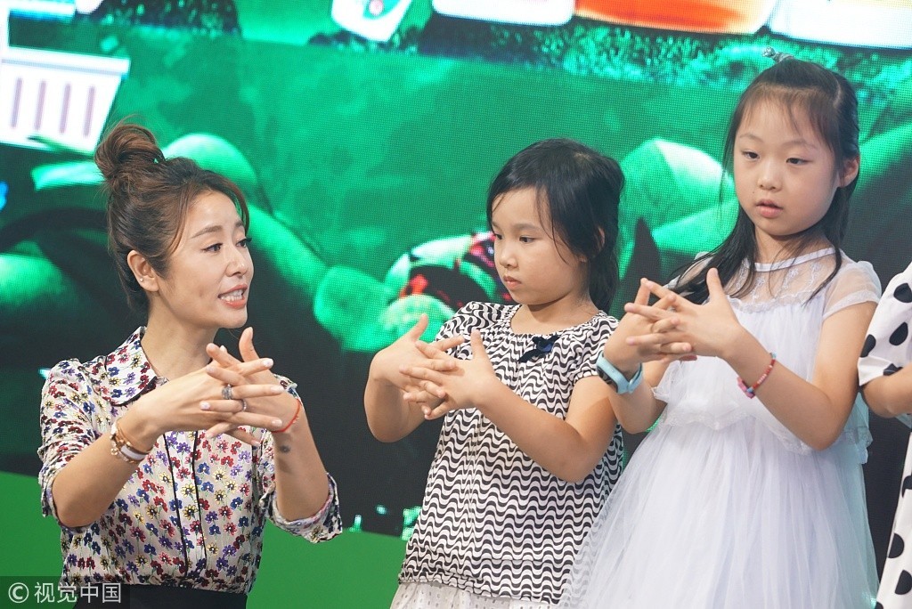 她蹲地与小粉丝互动显亲和,只是一不小心表情崩坏丑态尽显。