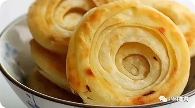 “绥德油旋”因其产自著名的陕北古代名州——绥德县而得名。“绥德油旋”外酥里嫩,脆软相间,香味扑鼻、非常可口。因其外表有一层层的旋涡状纹理,故而得名“油旋”,是陕北人有口皆碑、老少咸宜的著名小吃。绥德油旋由手工烙制,其色泽金黄油亮,层层饼旋薄如羽翼,外脆酥里绵软,油香扑鼻。若乘热用刀沿边划口,填入凉拌猪头肉,名为“狮子大张口”,咬一口肥美解馋。