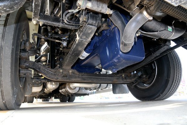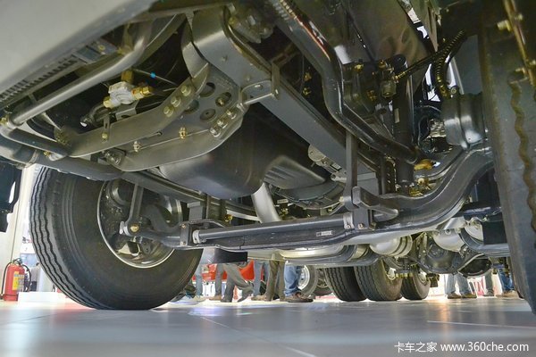 在动力方面,这款车采用东风康明斯ISL9.5-400E40A发动机,最大输出功率400马力。后桥采用的是3.08单级减速桥,和东风康明斯400马力发动机相匹配,兼顾速度和动力。另外值得一提的是,该车采用美国车常用单侧气囊悬架,减振性能好,重量轻,车身重量可以控制在7.6吨以内,这对于轻量化当道的今天来讲具有莫大的竞争力。