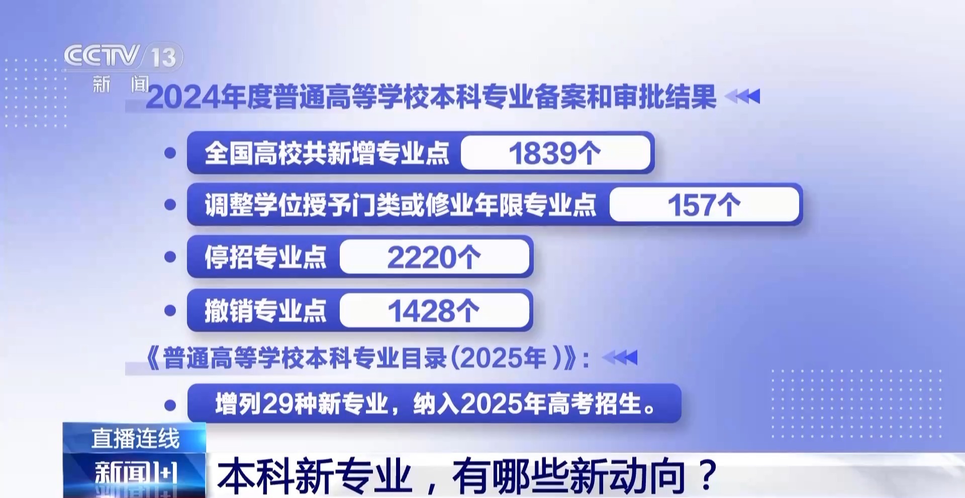 近日,教育部发布《普通高等学校本科专业目录(2025年)》,增列29种本科新专业。人工智能教育、舞蹈治疗、低空技术与工程、老年医学与健康等被列入其中。今年的学科调整与往年相比有哪些不同?新增学科又要用什么来支撑持续发展?教育部高等教育司副司长武世兴、中国教育科学研究院教育统计研究所所长马晓强作出了分析解读。