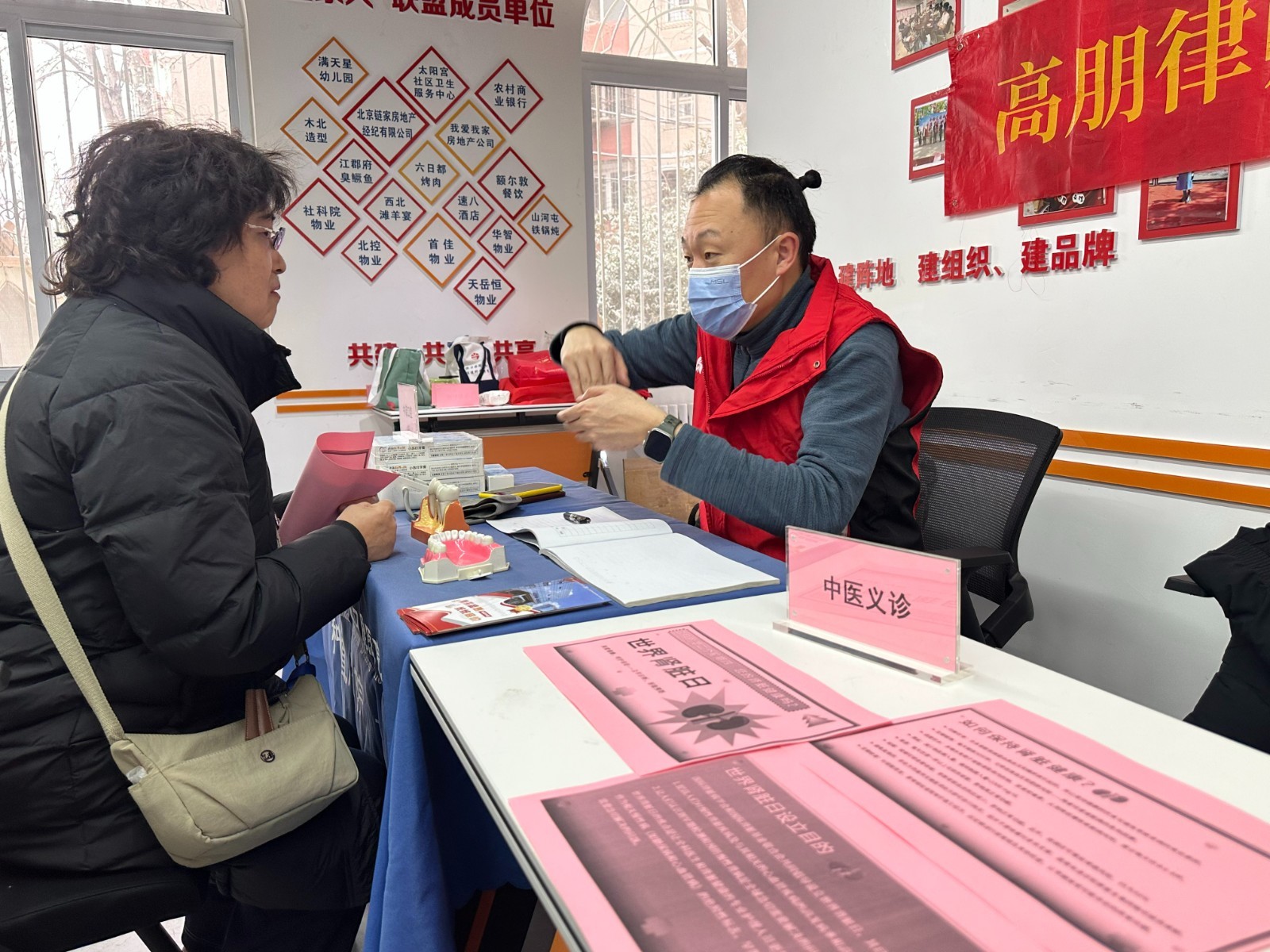 活动现场秩序井然,各类便民摊位一字排开,人气满满、暖意融融。中医义诊区,共建单位志愿者为居民免费测血压、辨体质,针对性解答肾脏健康、慢病调理等问题;口腔医生细致检查口腔,普及护牙知识,适配全龄群体需求。爱心商铺志愿者带来肩颈按摩服务,发放体验券,用专业技艺传递关爱。