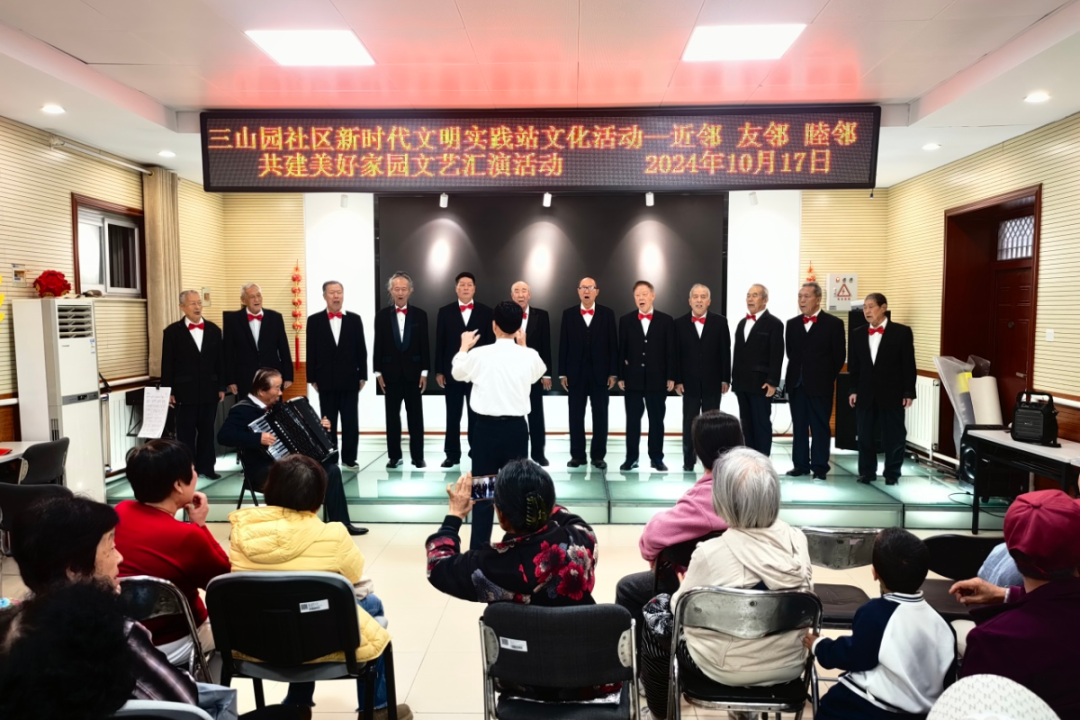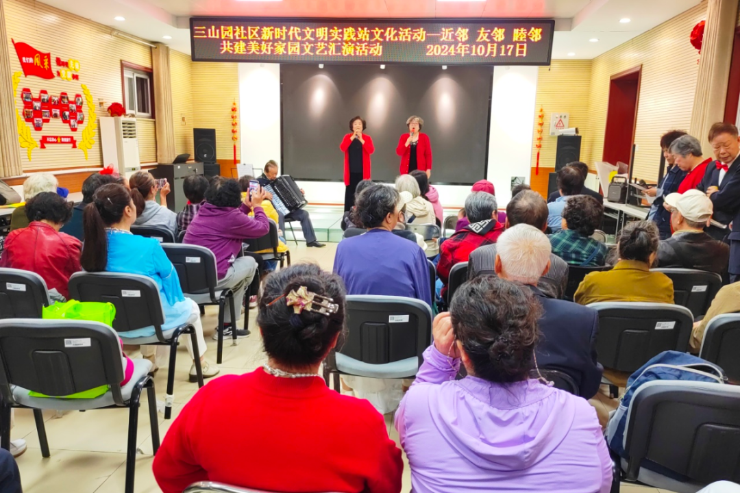 金秋十月同欢庆,居民共叙邻里情。近日,八宝山街道三山园社区在社区新时代文明实践站开展了“近邻 友邻 睦邻”——共建美好家园文艺汇演活动,通过才艺表演,让居民在欢乐中加强互动交流,增进邻里情谊。