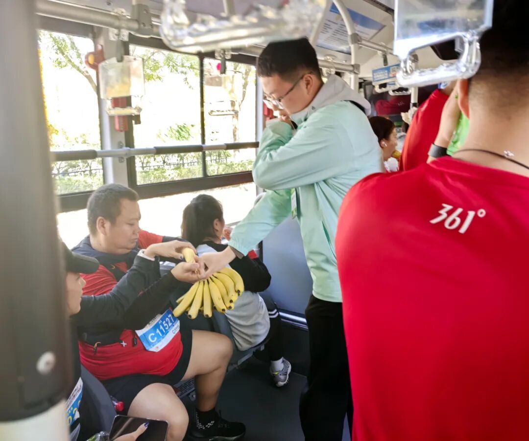 一时间,矿泉水、功能饮料、香蕉,在跑者们中间传递着。