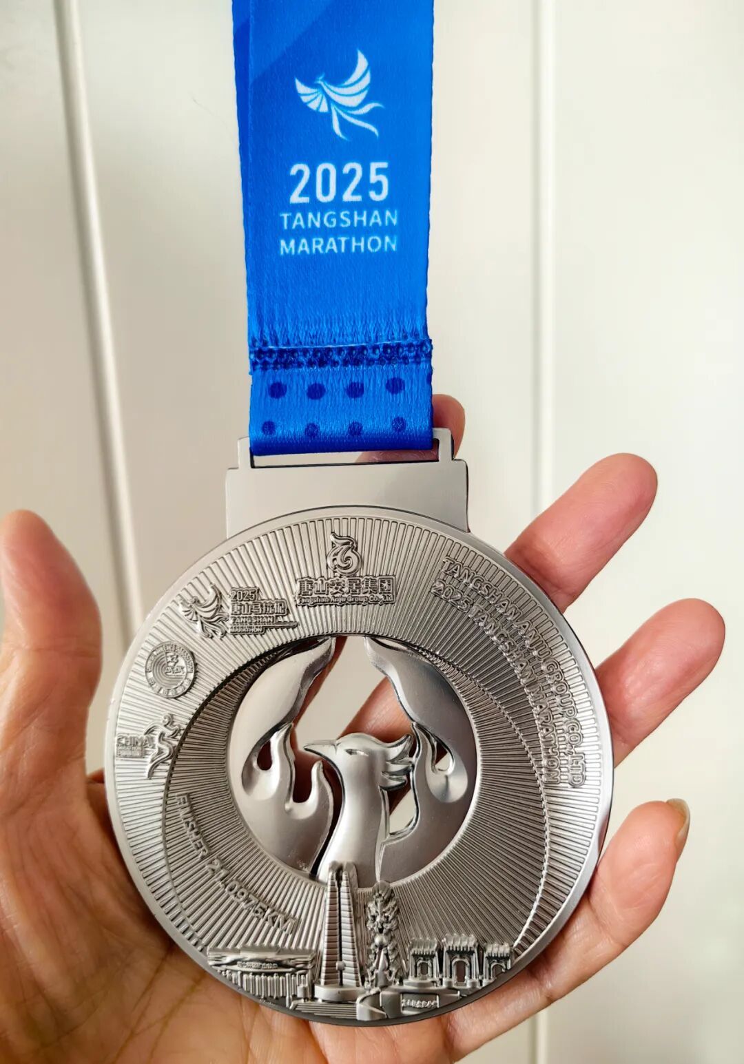 这是2025年10月26日唐山马拉松半程赛事的完赛奖牌,别人得到的。
