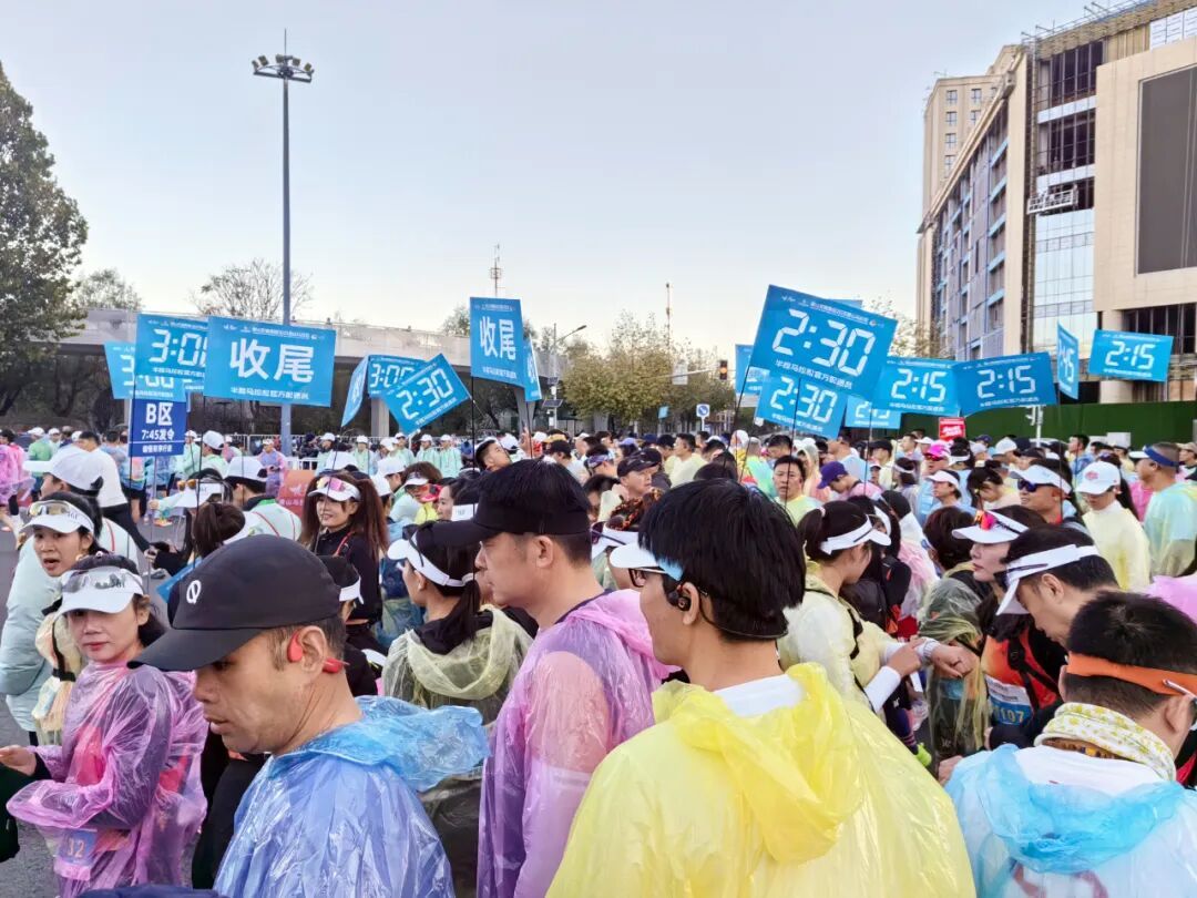 尽管有一定马拉松基础,但是面对极端天气,同时还要追求的成绩,充足的热身就显得非常的重要。