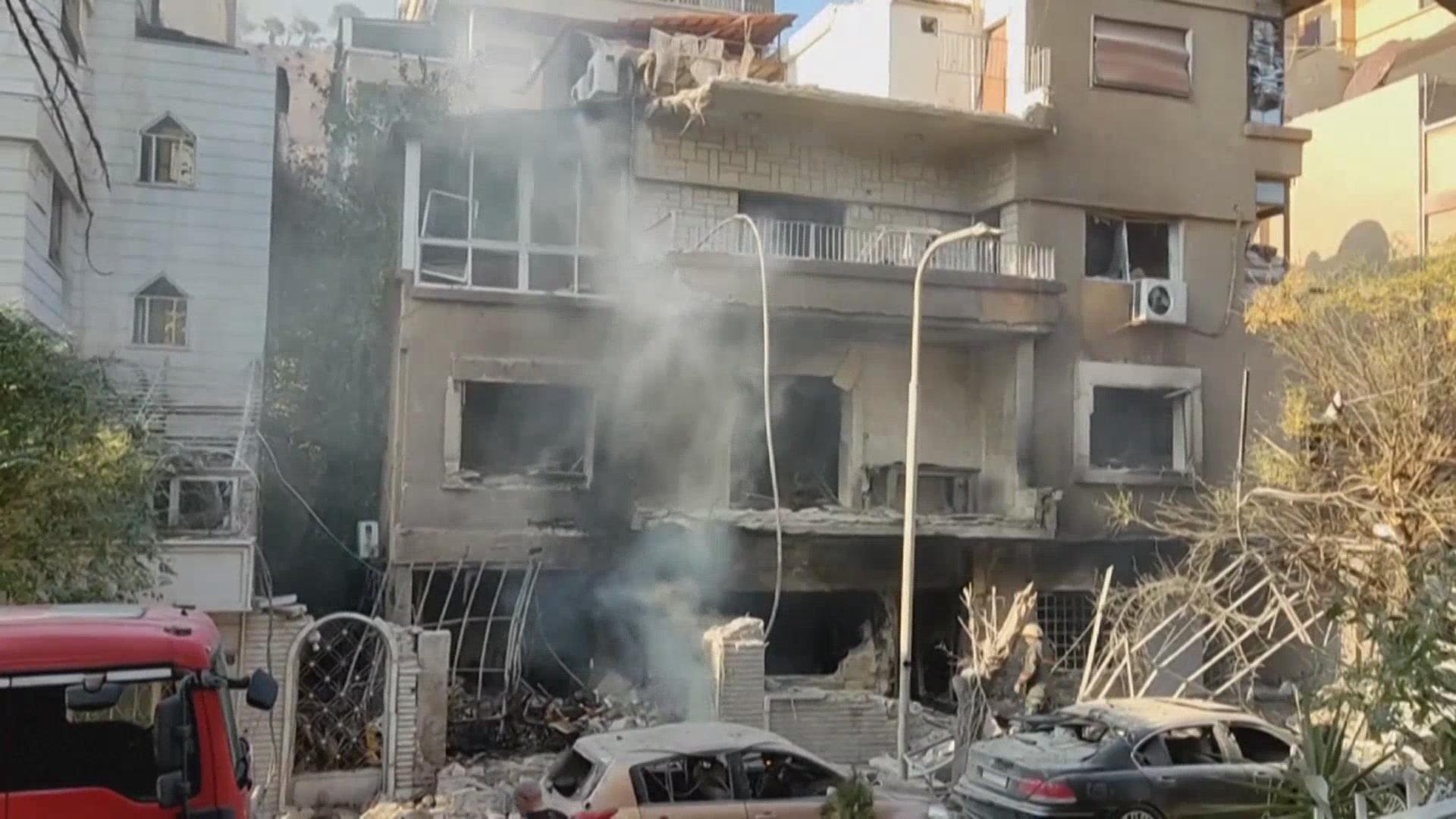 叙利亚大马士革遭以军空袭致数十人死伤_北京时间