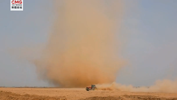 大片既视感 整地现场卷起“龙卷风”