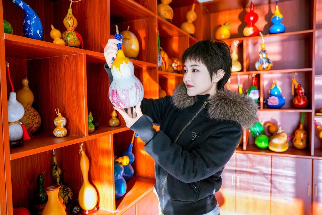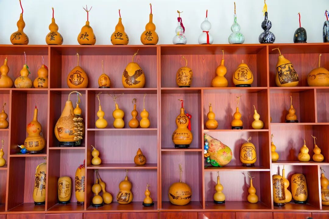 除了葫芦烙画这门国家级非遗技艺,工坊里的创意工艺品更是琳琅满目:可作家居装饰的葫芦灯、小巧便携的把玩葫芦、寓意吉祥的雕刻摆件,还有融入生活场景的葫芦收纳盒、挂饰,每一件都承载着“福禄双全”的传统祝福。