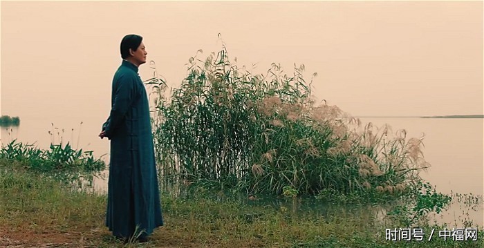一袭青衫,一丛绿色芦苇,一个叉手而立的身影,站在莽莽苍苍的江边,忧郁的眉头,深沉的目光,然后踱步。黄海冰没有说一句话,就把当时毛泽东的诗人气质和领袖风范演绎得淋漓尽致。想必此时,伟人一定在心中吟哦那首《菩萨蛮•黄鹤楼》吧——“茫茫九派流中国,沉沉一线穿南北。烟雨莽苍苍,龟蛇锁大江。”嗯,向语文老师强烈推荐这些镜头,讲解这首词的时候,就用它们来做《菩萨蛮•黄鹤楼》的课件吧。