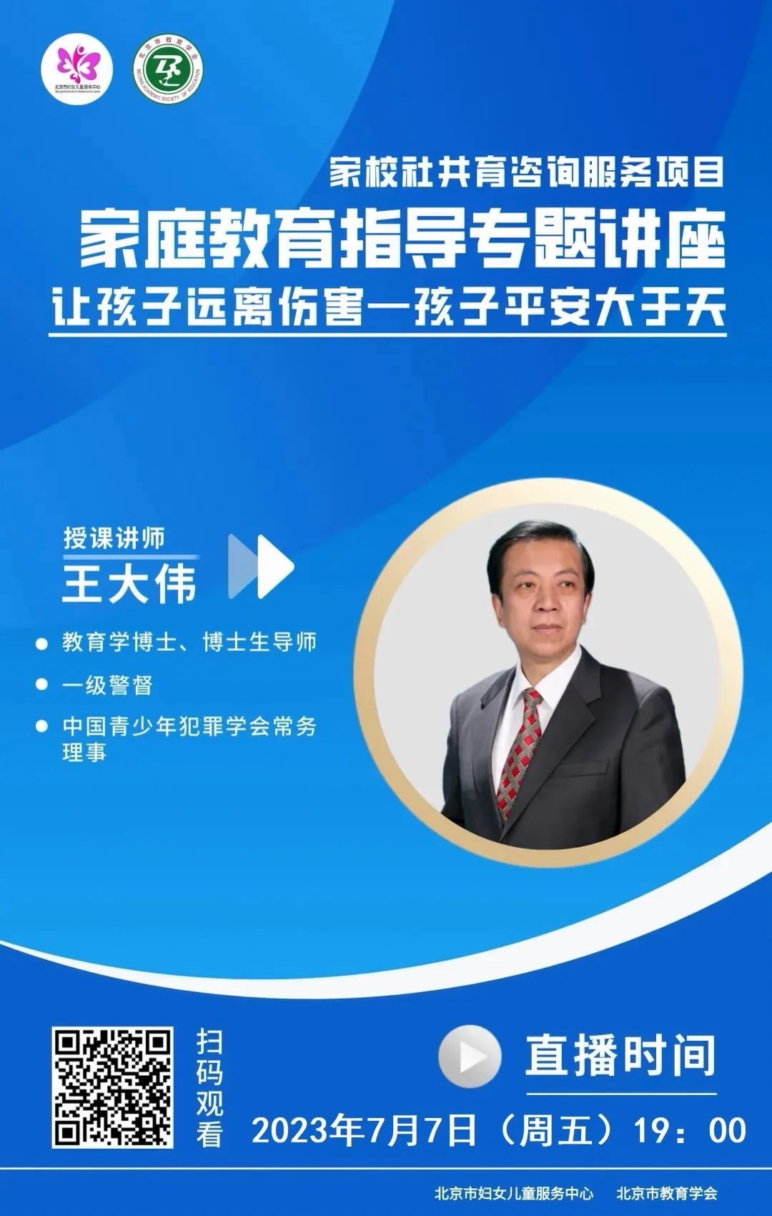 北京市妇女儿童服务中心邀请中国人民公安大学教授王大伟、北京市警察学院教授柳实、中国政法大学传播法研究中心副主任朱巍等国内知名的教育专家担任智慧讲师,集合宝贵的教育资源,举办《让孩子远离伤害》系列讲座,帮助家长增强安全意识,做好孩子的安全防护工作,提高孩子们的自我保护能力。让我们共同努力,更好地为孩子的健康成长保驾护航。