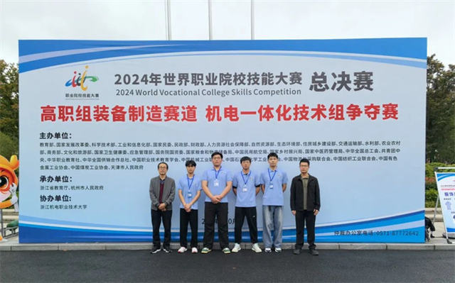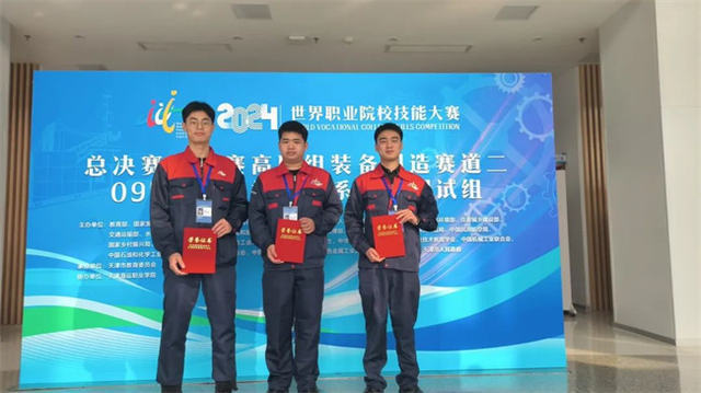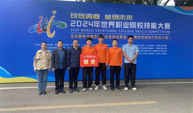 由数控技术学院贾艳瑞、张庆婕教练团队指导的李振升、王一恒、张浩团队获世界职业院校技能大赛数控多轴加工技术组赛项银奖。