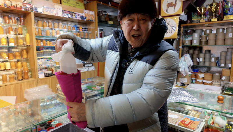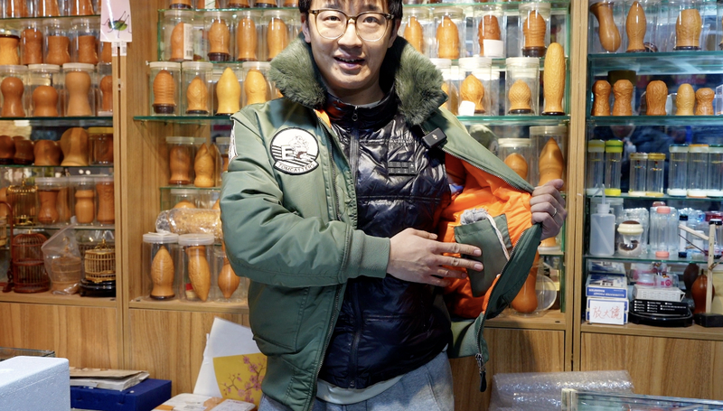 虫友陈大哥:这个叫招财,我们做生意的人喜欢把蝈蝈、咂嘴带回家去,它叫得特别舒服,客人比较愉悦,大家就比较融洽,就很招财。而且有些虫呢,客人喜欢的就送人家了,所以我管它叫招财。