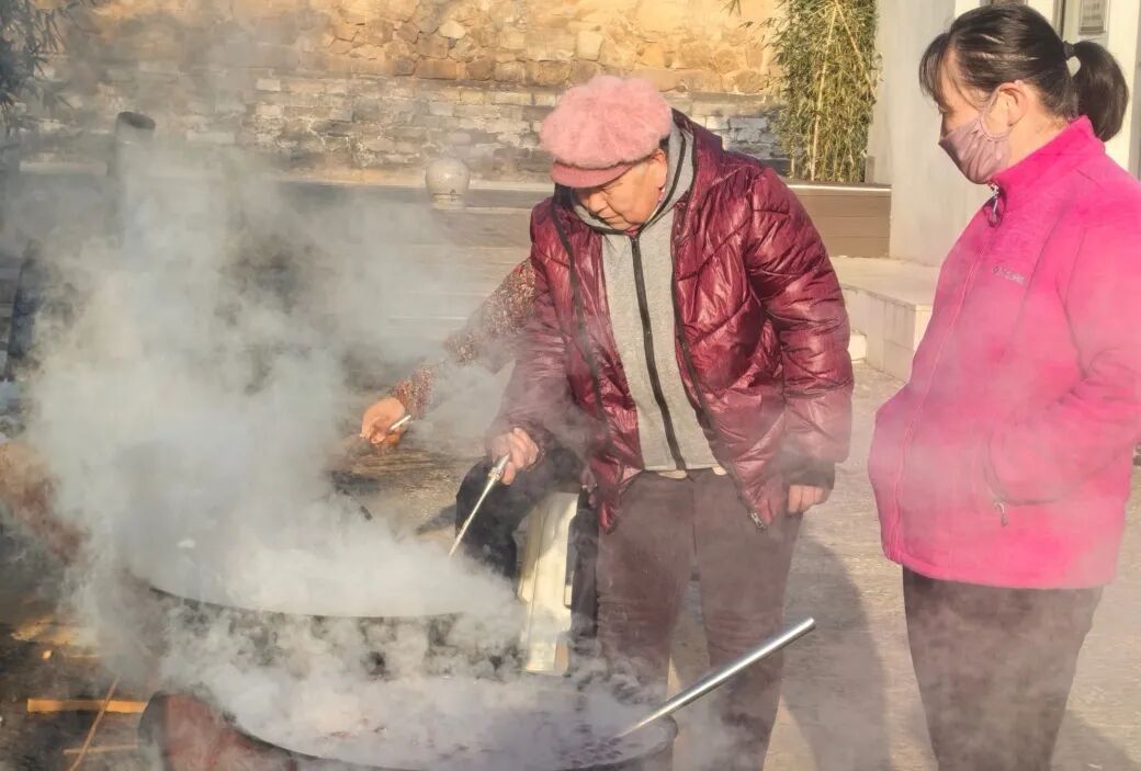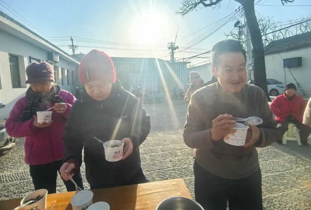 在东水峪村,志愿者们早早准备红豆、红枣、八宝米等食材,由经验丰富的村民掌勺,利用两口大锅同时熬制。经过三小时的耐心搅拌,浓稠香甜的腊八粥温暖出炉。工作人员将粥分发给村民,大家围坐在一起,品尝交流,场面温馨融洽。