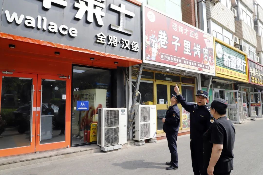 胜利街道小巷管家与商户沟通“门前三包”责任区环境维护情况。