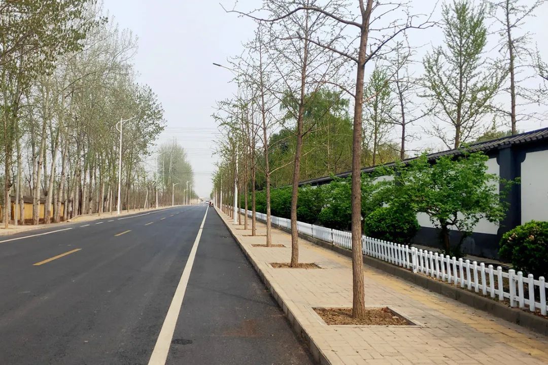 马坡镇综合路:一侧麦田,一侧绿树