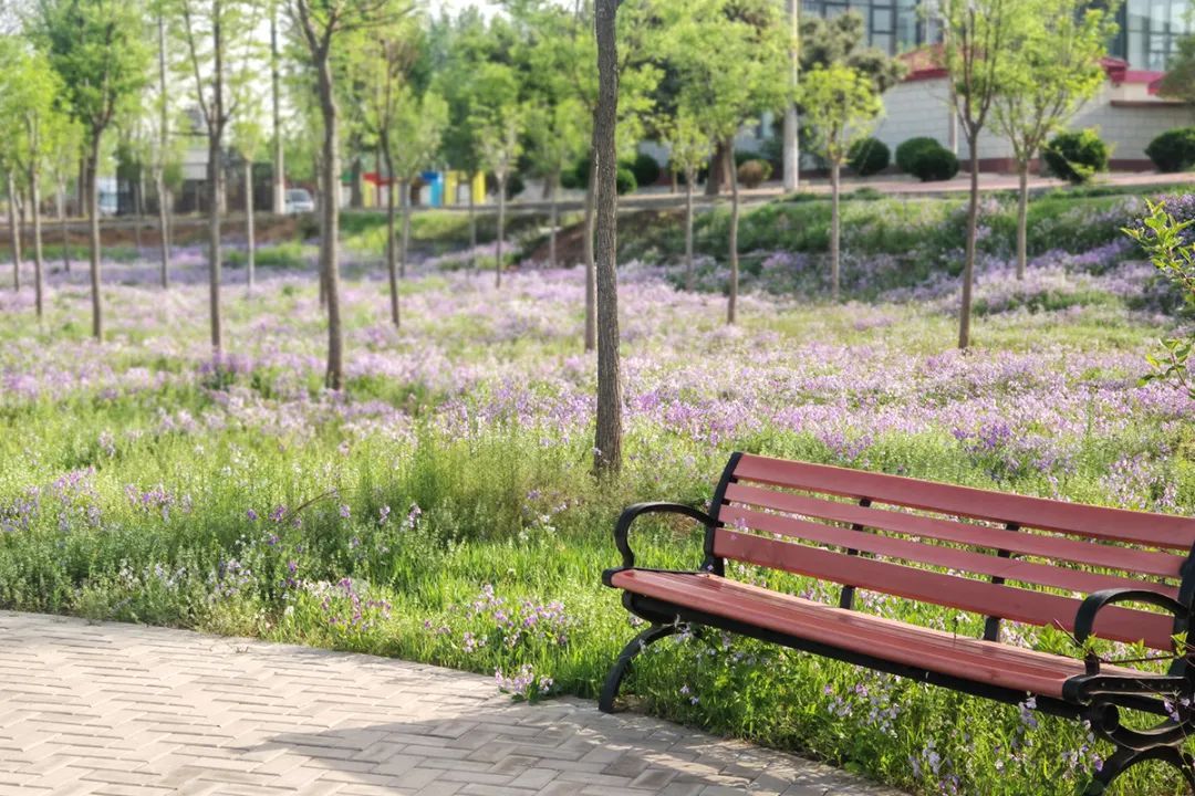 北小营镇福兴路一侧是温馨的住宅,一侧是公园绿地,绿地内盛开的二月兰,编织出一片如梦似幻的紫色花海,带给村民“推门见绿,移步入园”的生活体验。