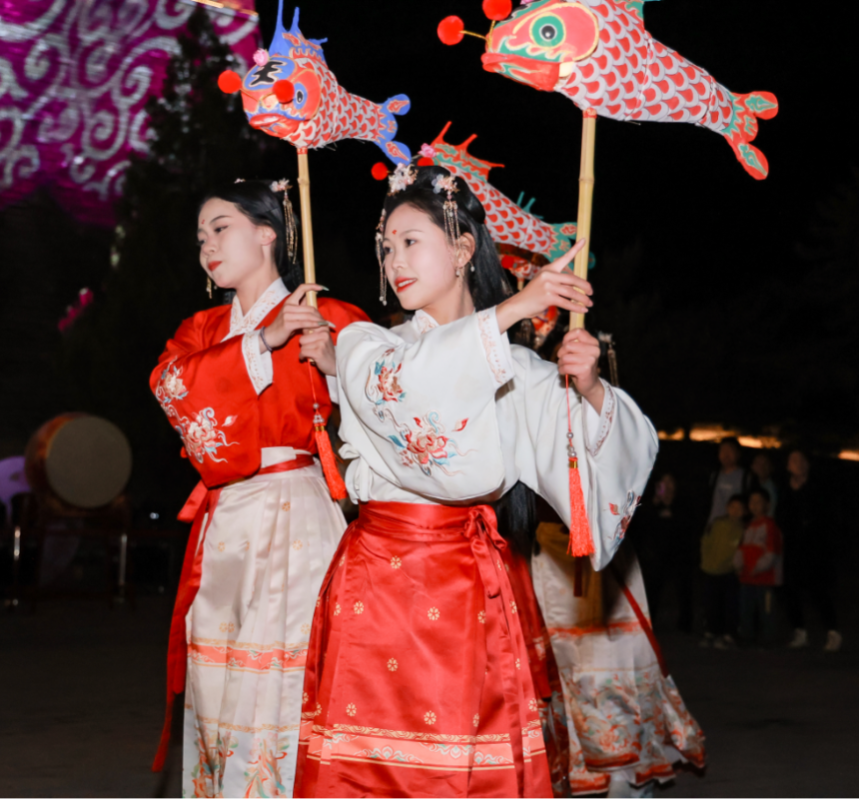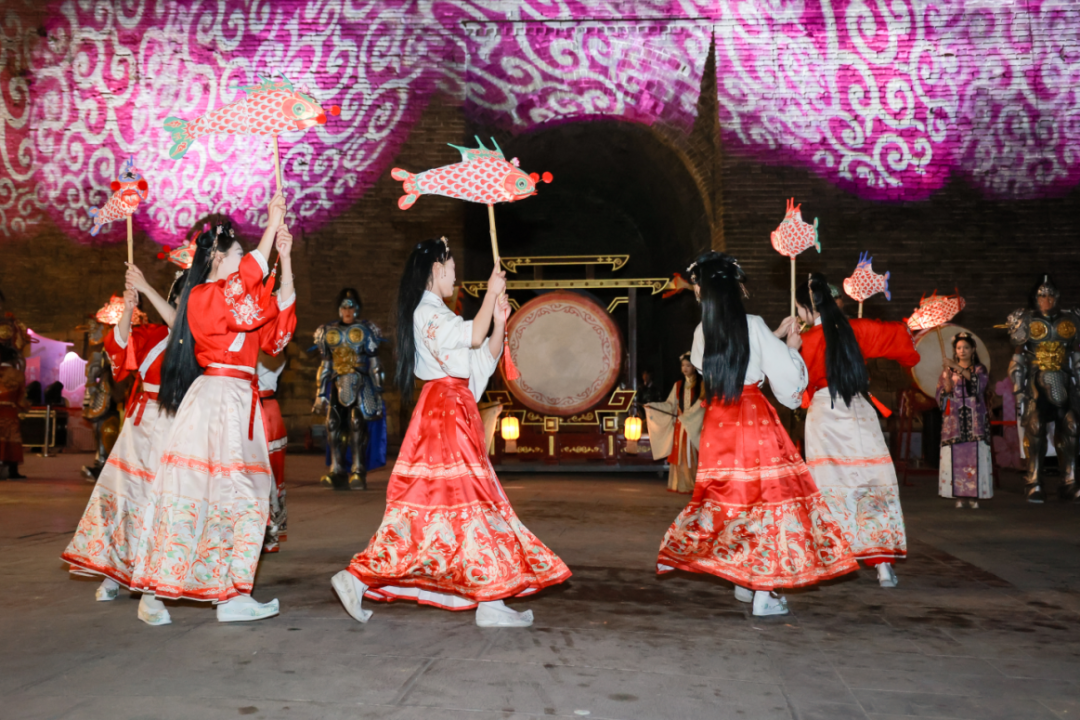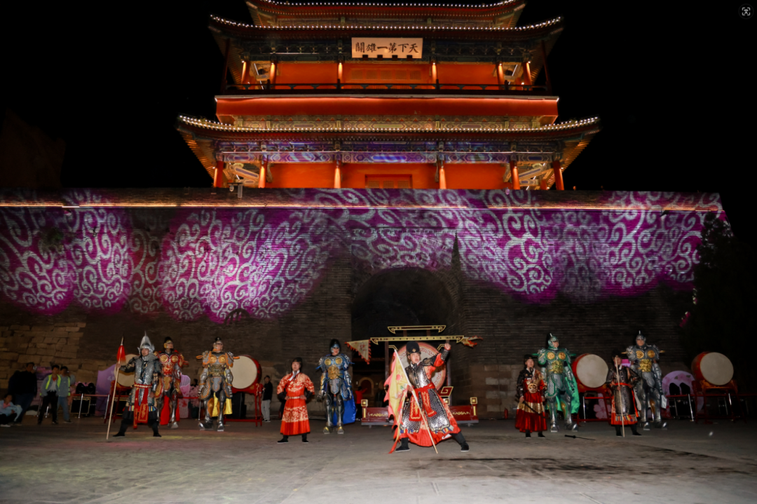 深夜的居庸关灯火璀璨,炫目的灯光、养眼的汉服小姐姐手持鱼灯快闪,引人入胜的甲胄走秀,都将烘托出气势磅礴的娱乐氛围。