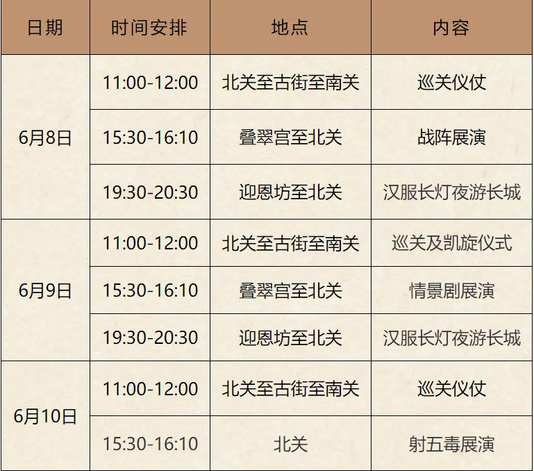 本次活动表演时间为6月8日—6月10日,每天将进行2至3场的表演,活动期间,居庸关长城景区将实行实名制预约购票,游客们可通过官方渠道进行预约。
