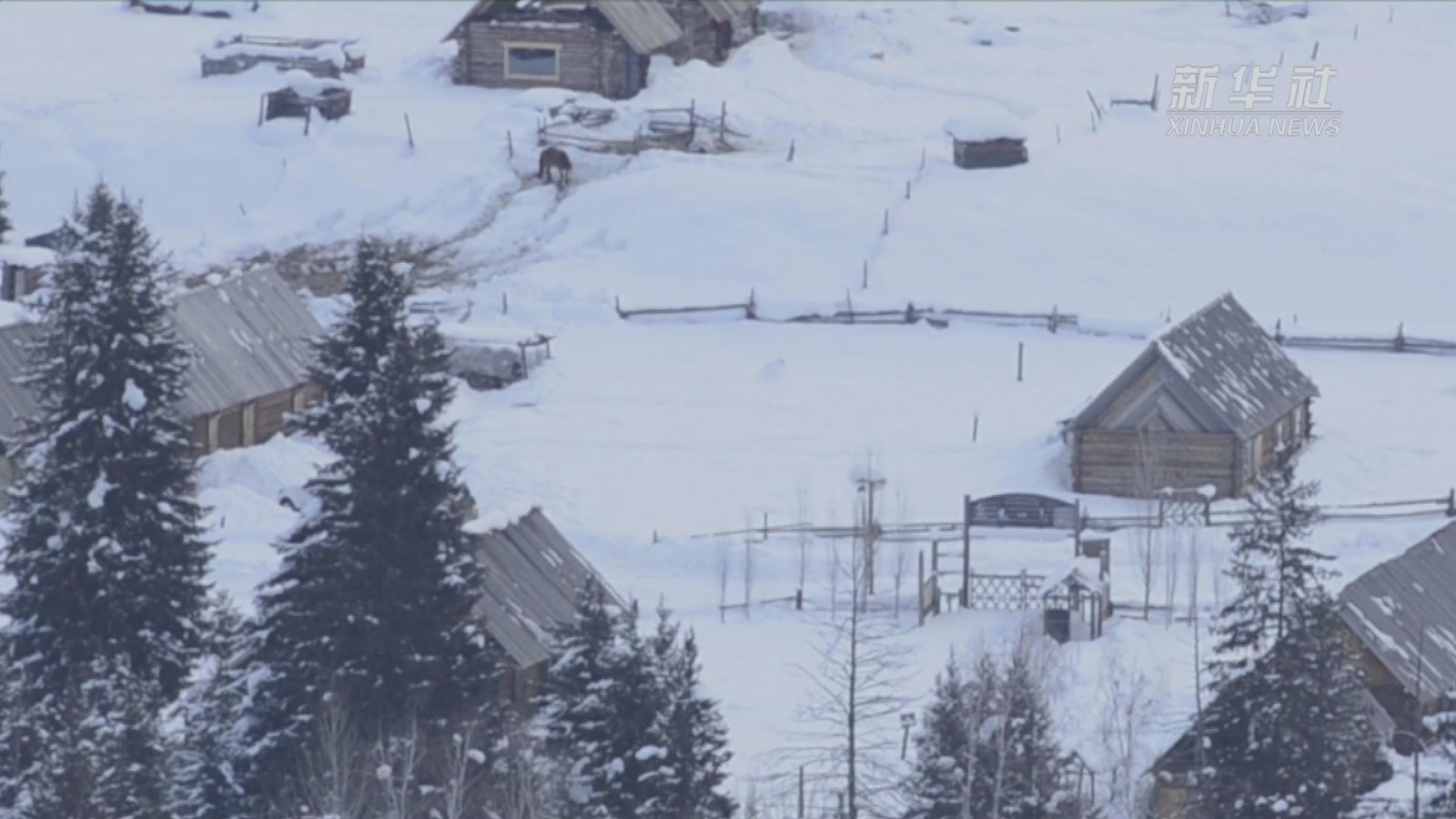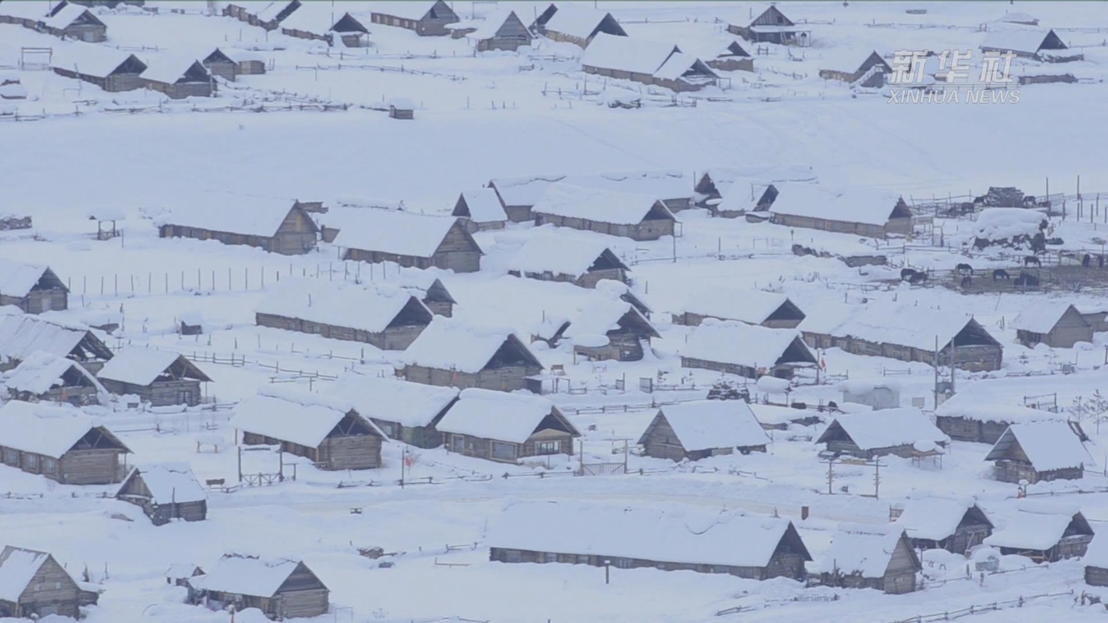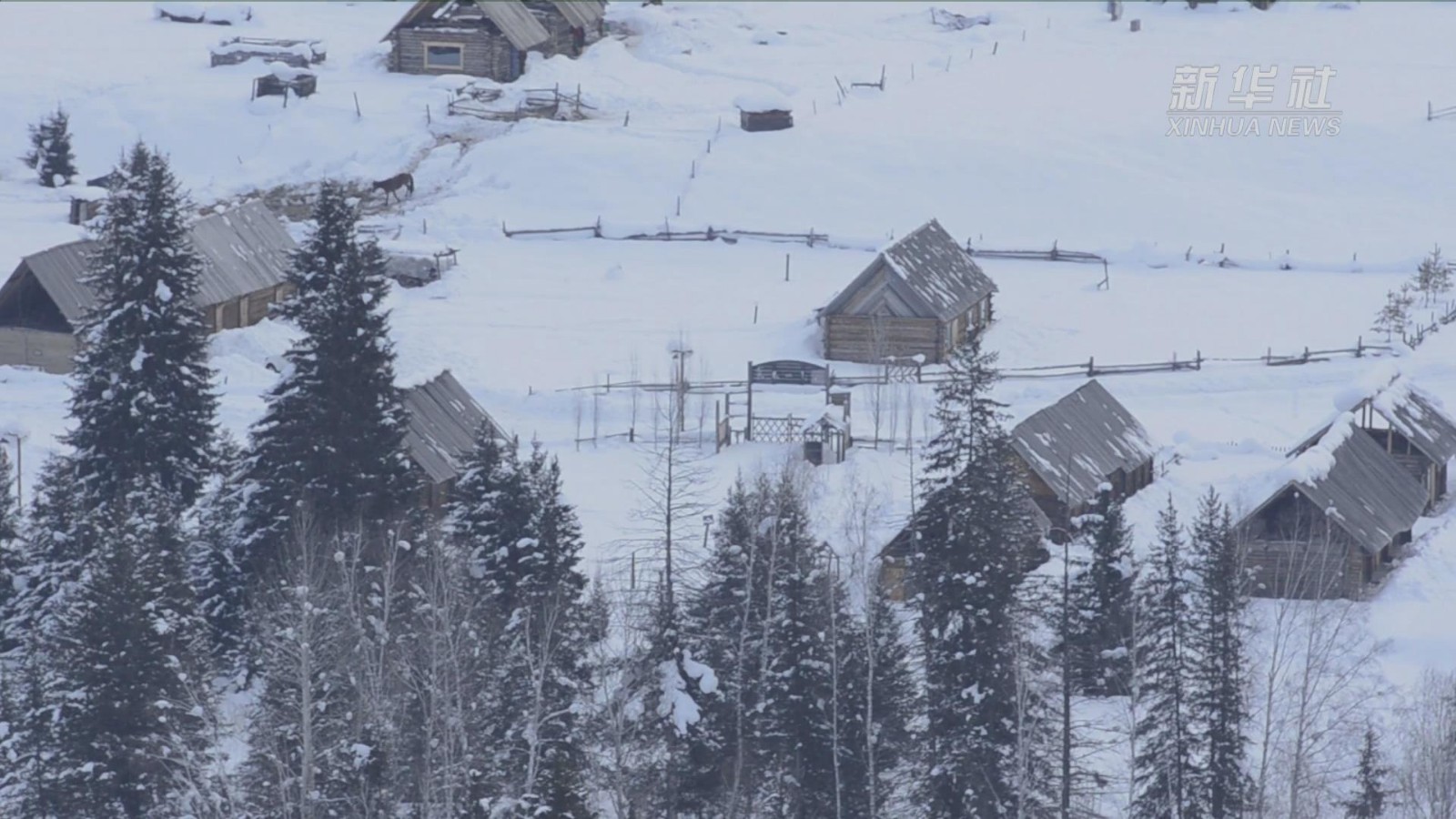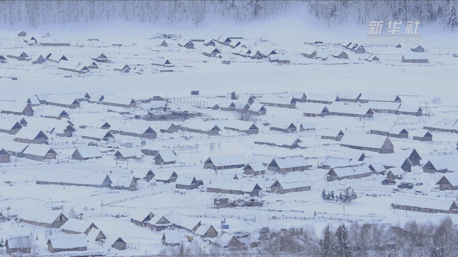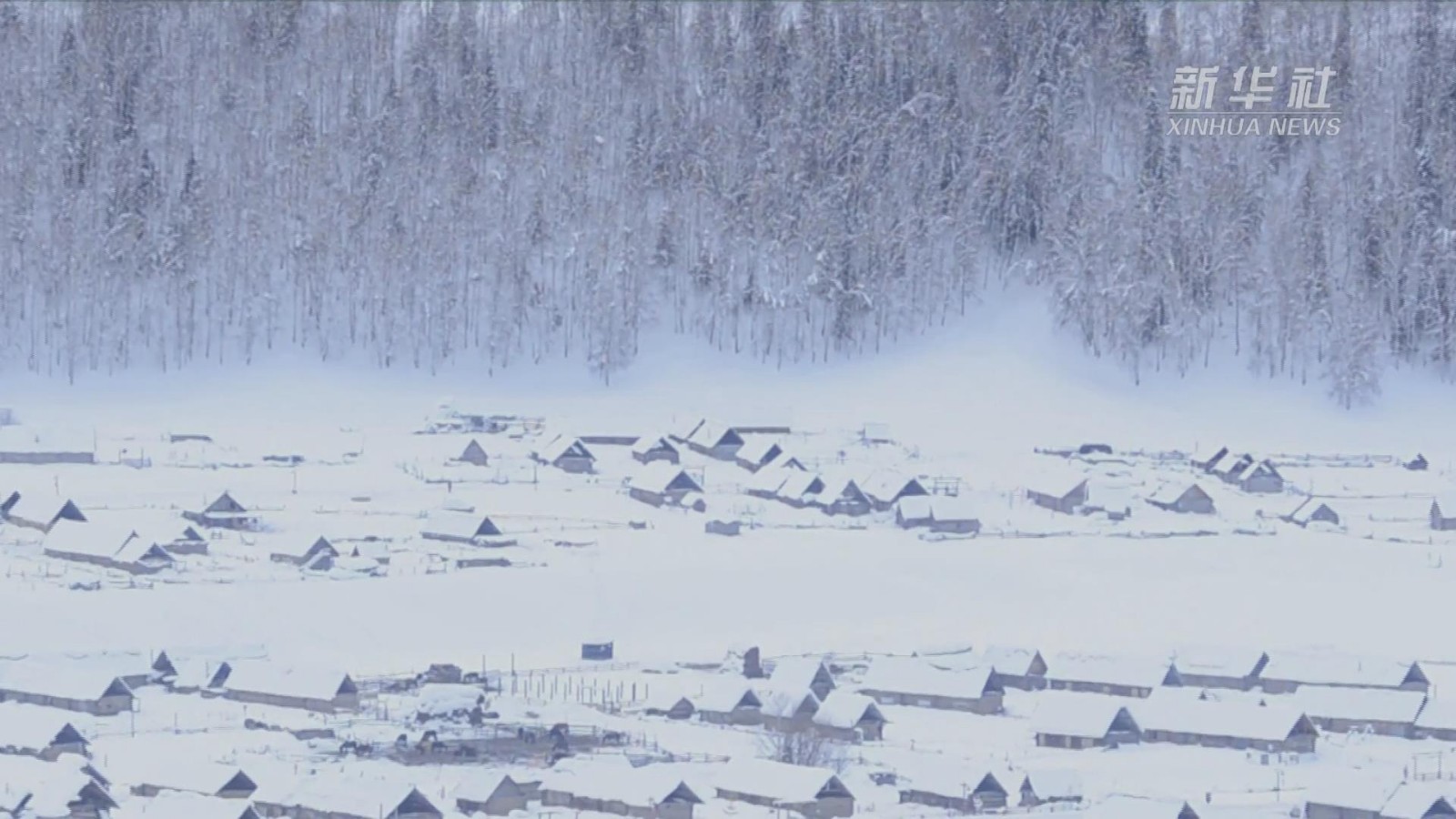 近日,位于新疆喀纳斯景区的禾木乡迎来新一轮降雪降温天气,雪后的禾木乡积雪厚达一米左右,把原始的小木屋村落装扮得银装素裹。