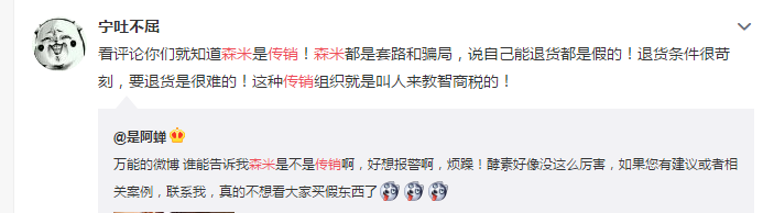 但微博中有投诉者称,退货条件很苛刻,要退货很难,这种传销组织就是叫人来教智商税的。