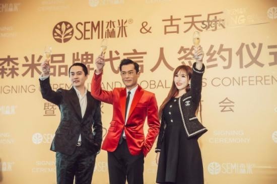 值得一提的是,森米品牌还请来了明星古天乐做代言。根据网上的宣传软文显示,2019年1月10日,《森米代言人签约仪式暨全球新闻发布会》在香港四季酒店举行,森米品牌创始人莫七七女士、森米品牌总经理沈丹枫先生、森米47位品牌联合创始人,与著名影星古天乐先生的代言人签约仪式。