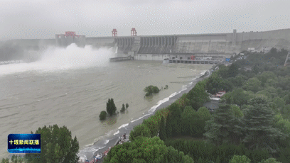 在丹江口大坝景区,不少游客凭栏远眺,感受江水奔涌的磅礴气势,不时举起手机记录下大坝泄洪的震撼瞬间。
