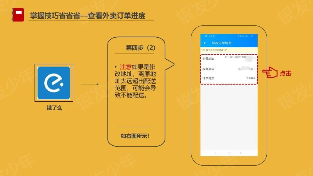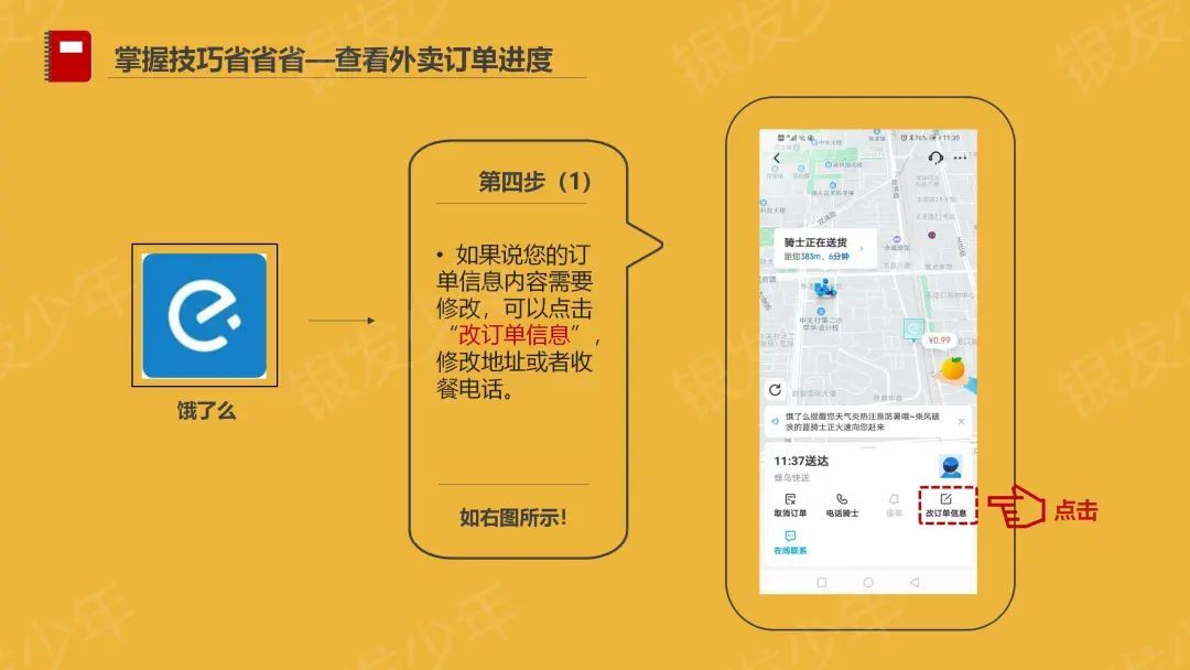 第四步:如果说您的订单信息内容需要修改,可以点击“改订单信息”,修改地址或者收餐电话。