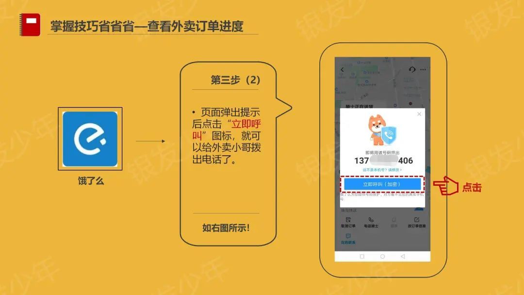 页面弹出提示后点击“立即呼叫”图标,就可以给外卖小哥拨出电话了。