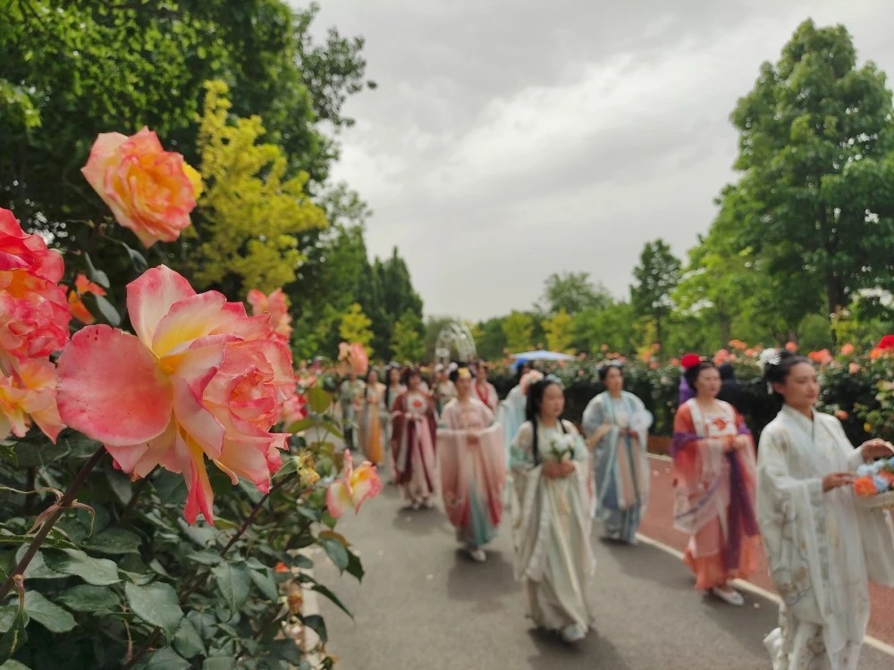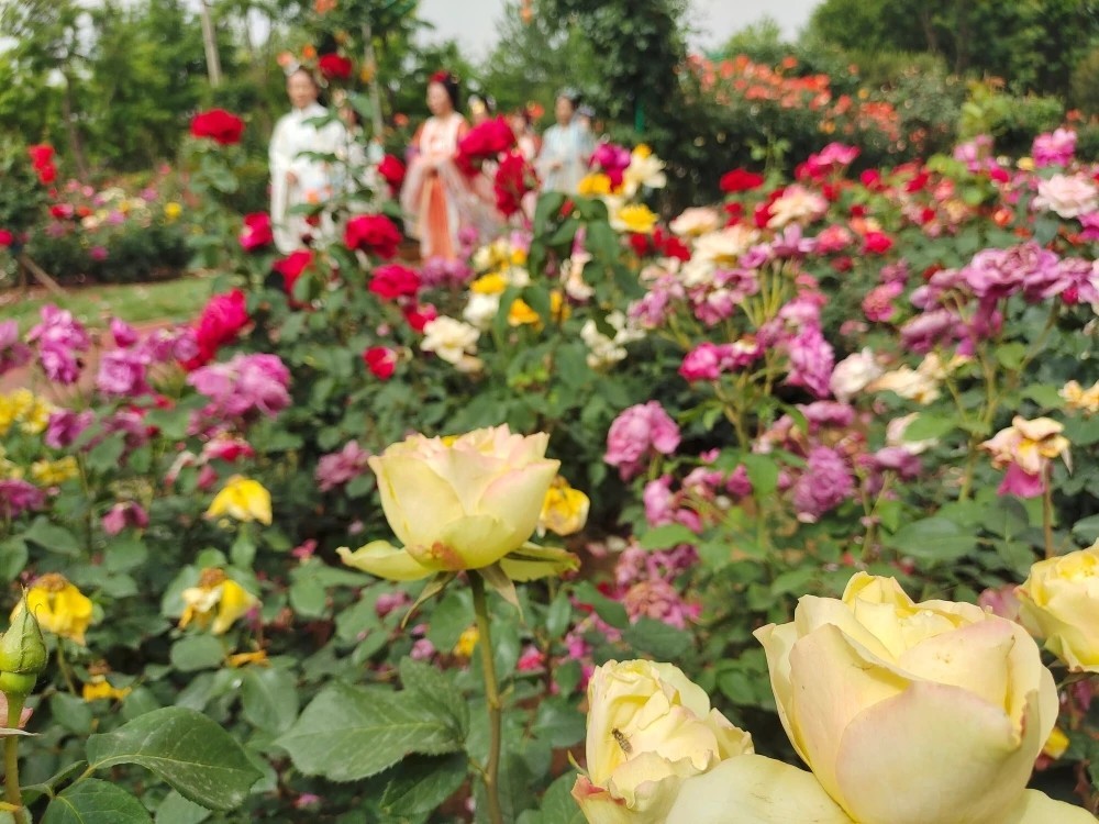 目前,北京园博园的月季正值盛花期,吸引不少游客前来拍照打卡。